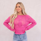 Hem & Thread Sunset Drift Crochet Boat Neck Sweater Fuchsia