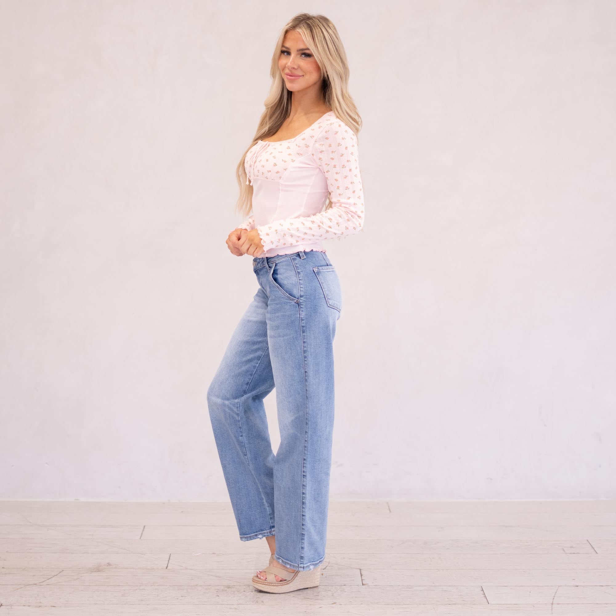 Hem & Thread Wildflower Whisper Square Neck Top Pink
