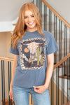 Leopard Bull Skull Graphic - Denim Blue T-Shirt