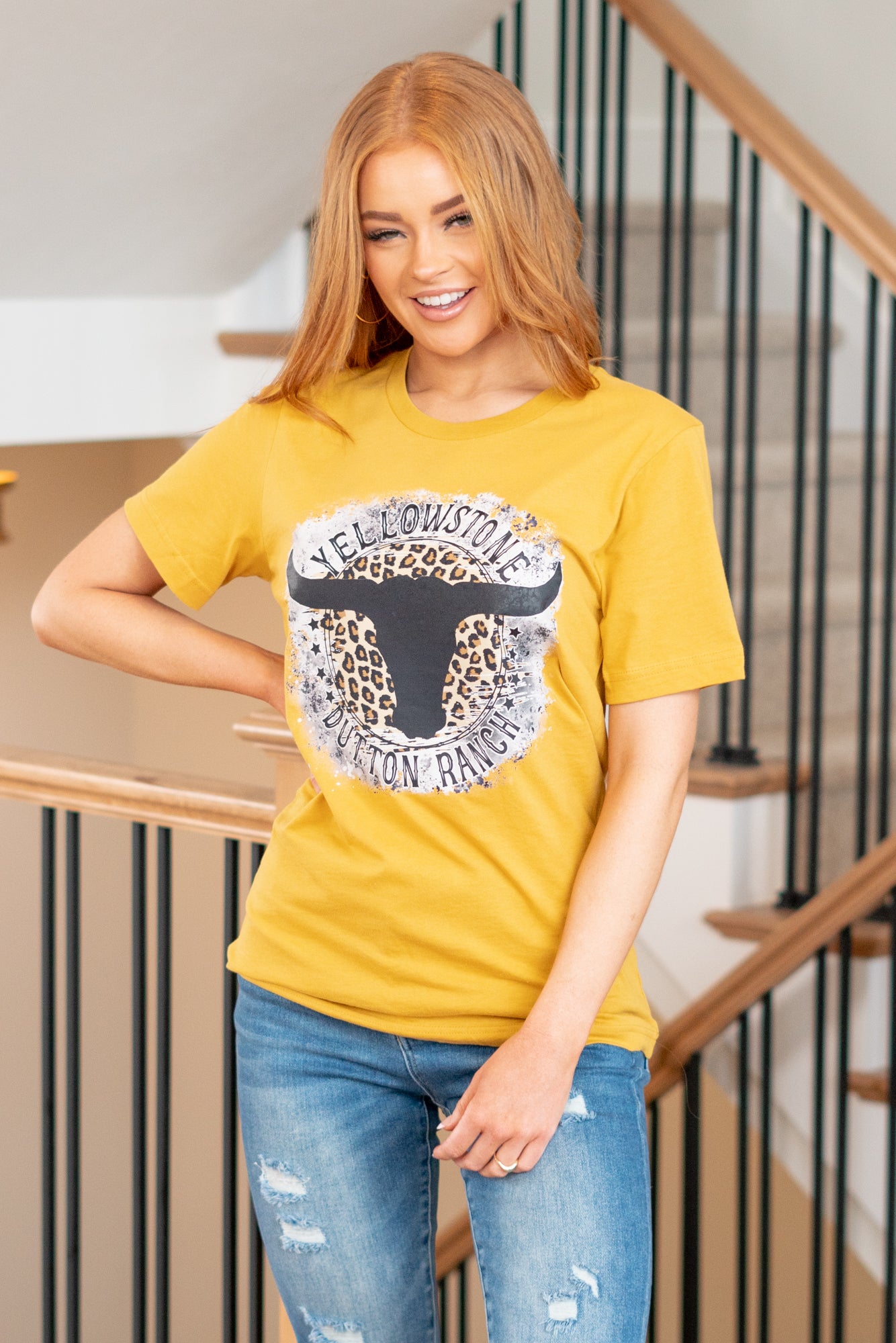 Longhorn Leopard Graphic - Mustard T-Shirt