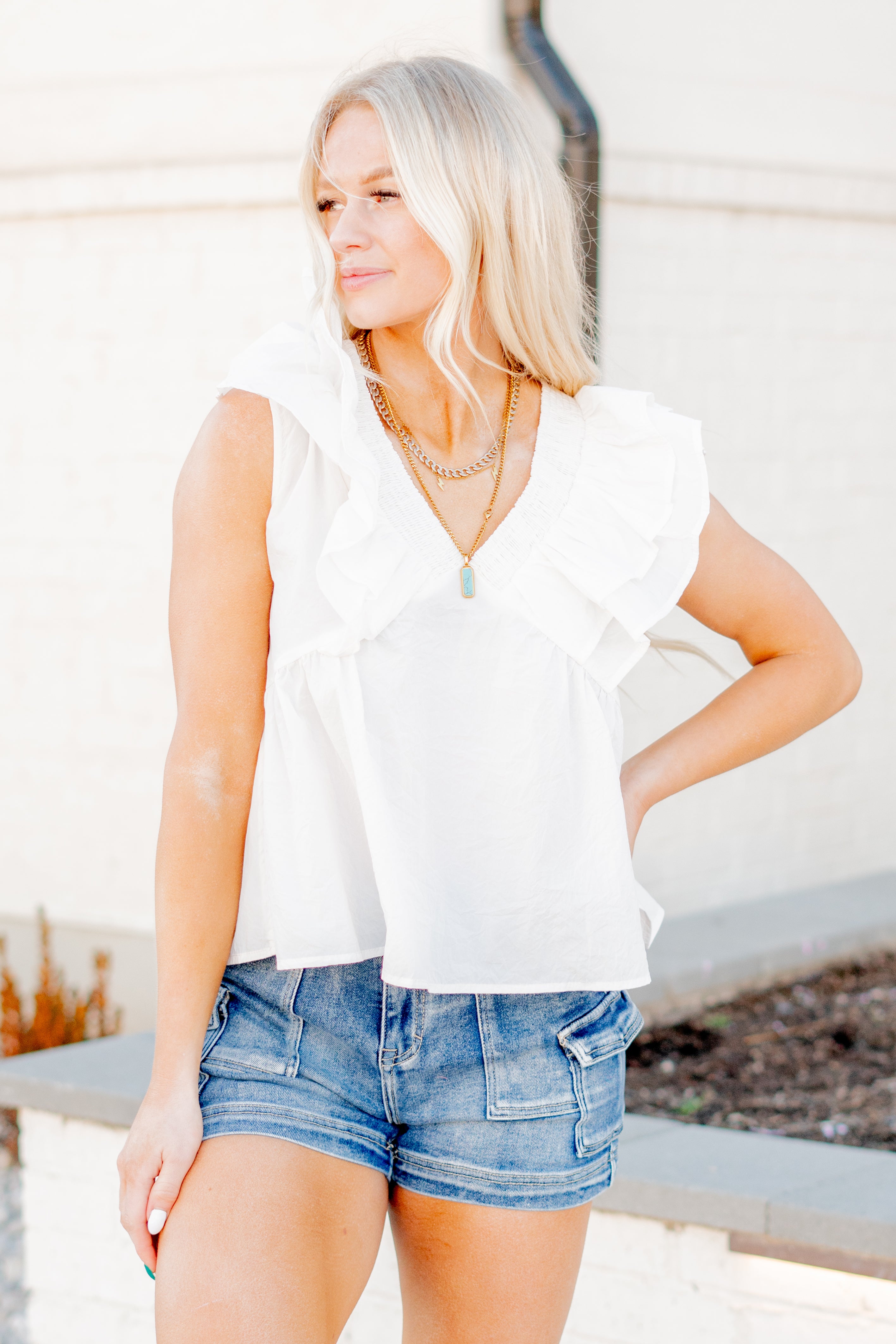 Introducing our V-Neck Ruffle Babydoll Nylon Top, a charming addition to your wardrobe. This top features a flattering V-neckline and delicate ruffle detailing, adding a touch of femininity to your look. Made from soft and lightweight nylon fabric, it offers both comfort and style for all-day wear. Perfect for pairing with jeans or skirts, this versatile top is ideal for both casual outings and special occasions. Upgrade your wardrobe with this stylish and versatile piece today!