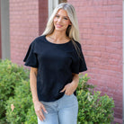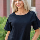 Vanilla Bay Raw Edge Relaxed Knit Tee – Black