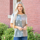 Vanilla Bay Starlit Contrast Leopard Knit Tee – Olive