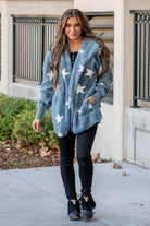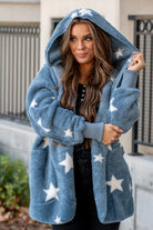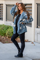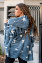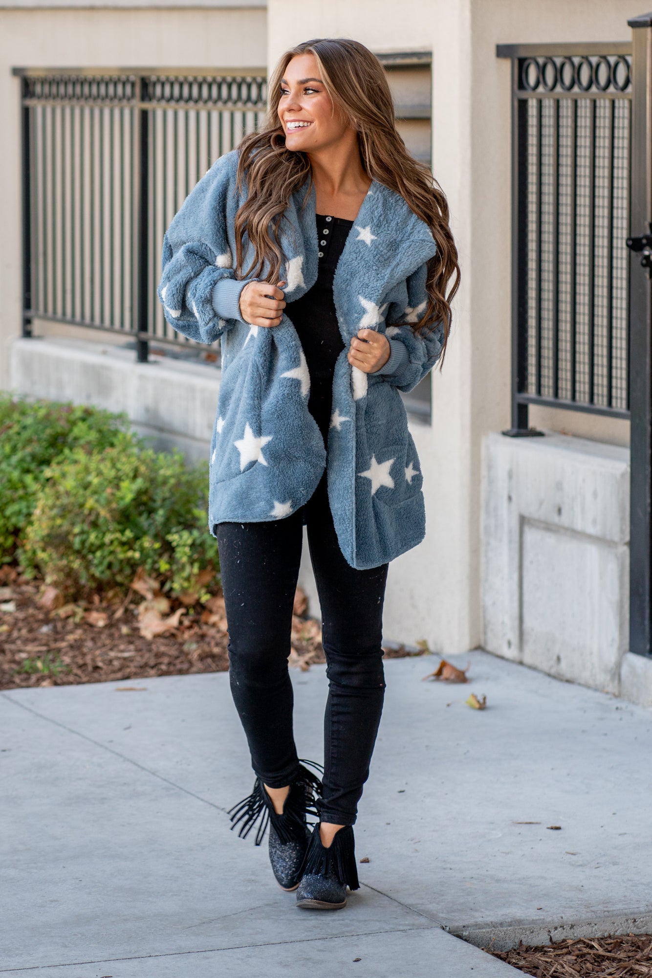 Feel your inner americana in this star print sherpa jacket. Pair with a great boyfriend denim in heels for a trendy fun look.