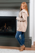 This is that cozy jacket you will throw on every day and go! One size fits most with an open neckline and long sleeves and side pockets.