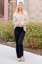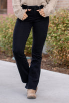Get ready to rock the town in these chic black mini bootcut pants. With a cozy fleece inner lining, they're perfect for staying warm while looking stylish. Featuring a mid-rise design with a 9" front rise, they strike the ideal balance between comfort and fashion. Crafted from a blend of cotton, polyester, and spandex, these pants offer flexibility and style in one package. Classic stitching, a zipper Fly, and 5 pocket design, makes these pants a must-have for your wardrobe