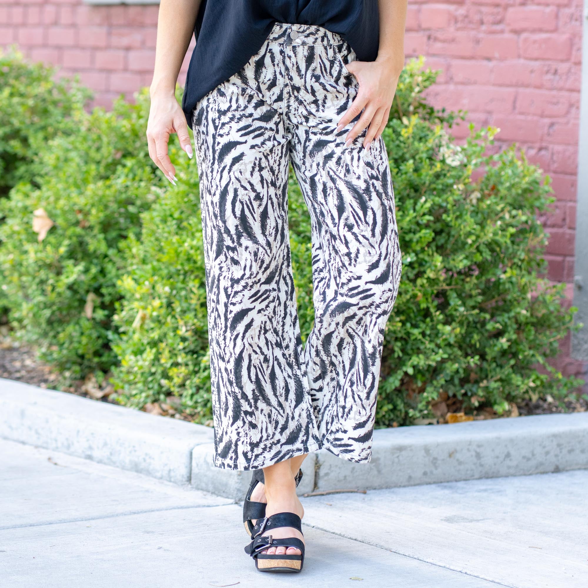 KanCan Alonso Mid Rise Printed Crop Wide Leg Jeans Beige Wash