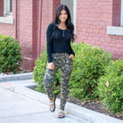The Arden High Rise Cargo Super Skinny Jeans bring utility-inspired style with a sleek, body-hugging fit. Designed in a bold camo green wash, this pair sits high on the waist and sculpts down through the leg for a flattering, modern silhouette.