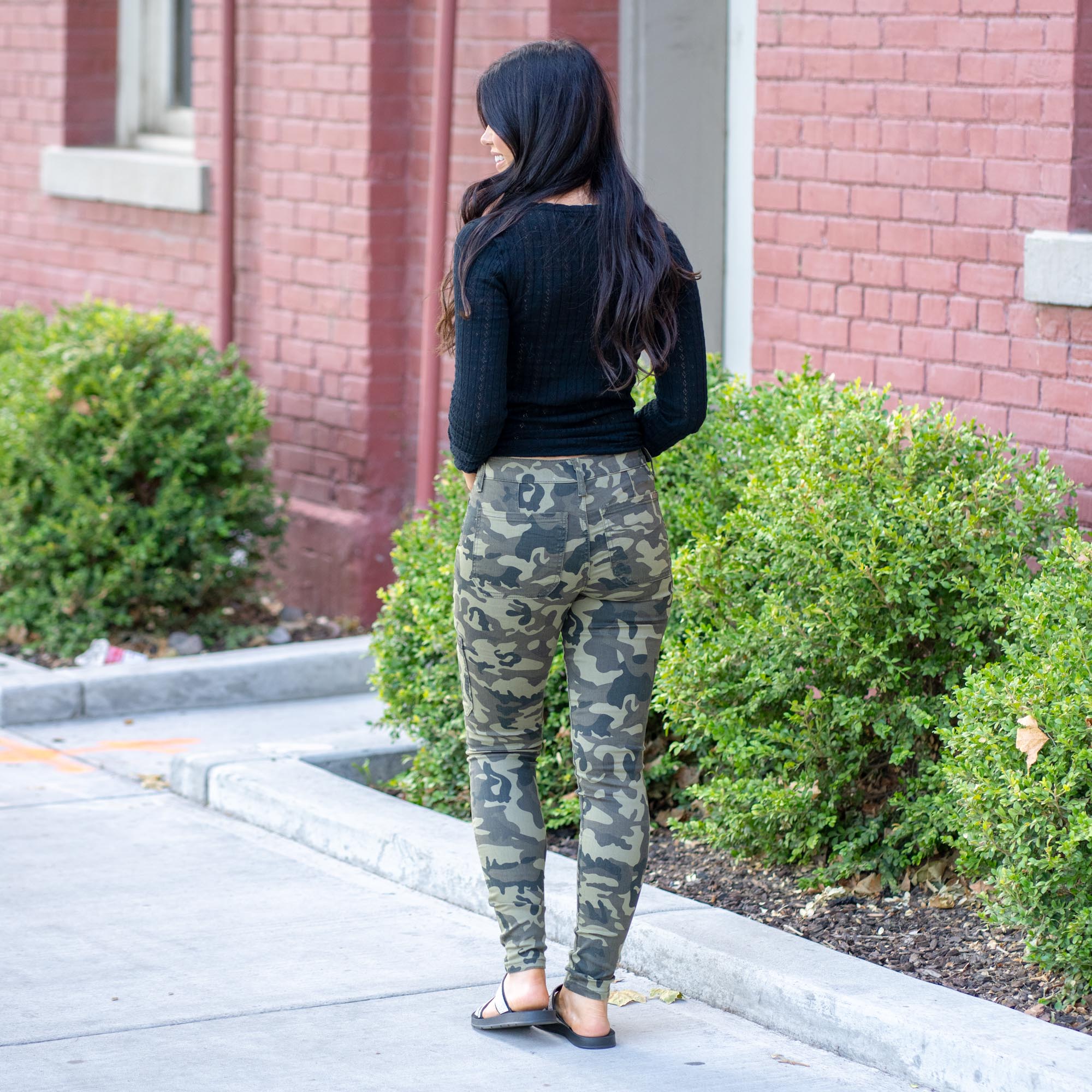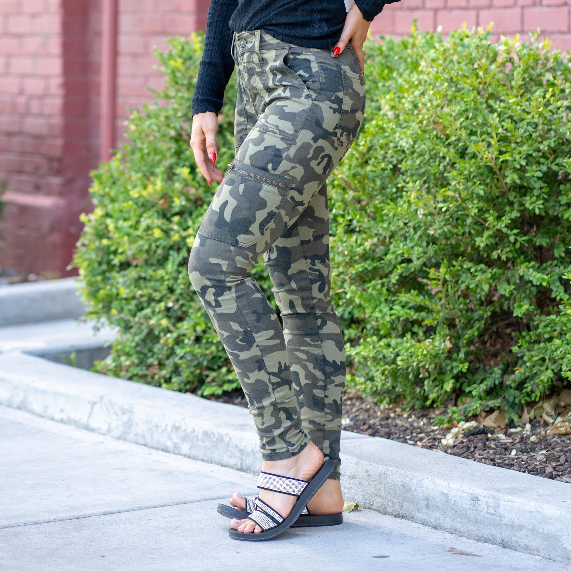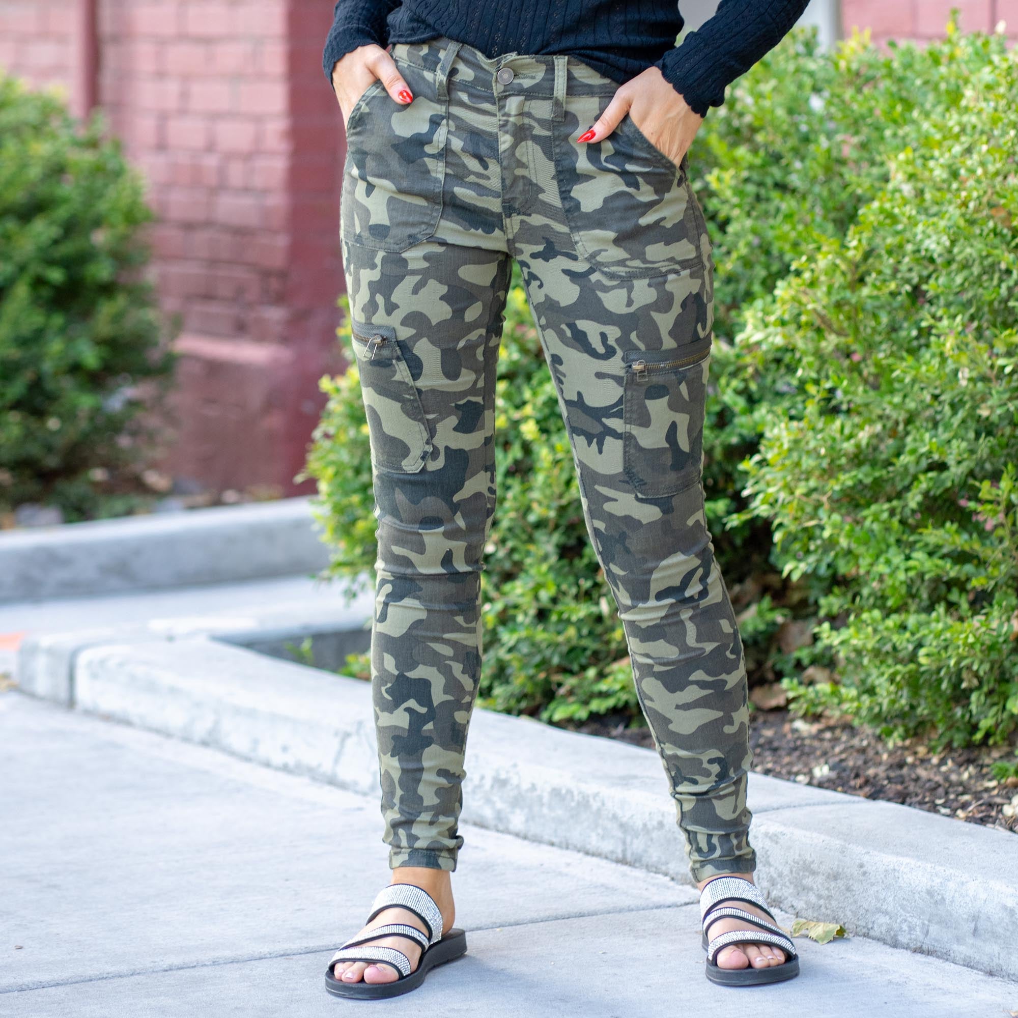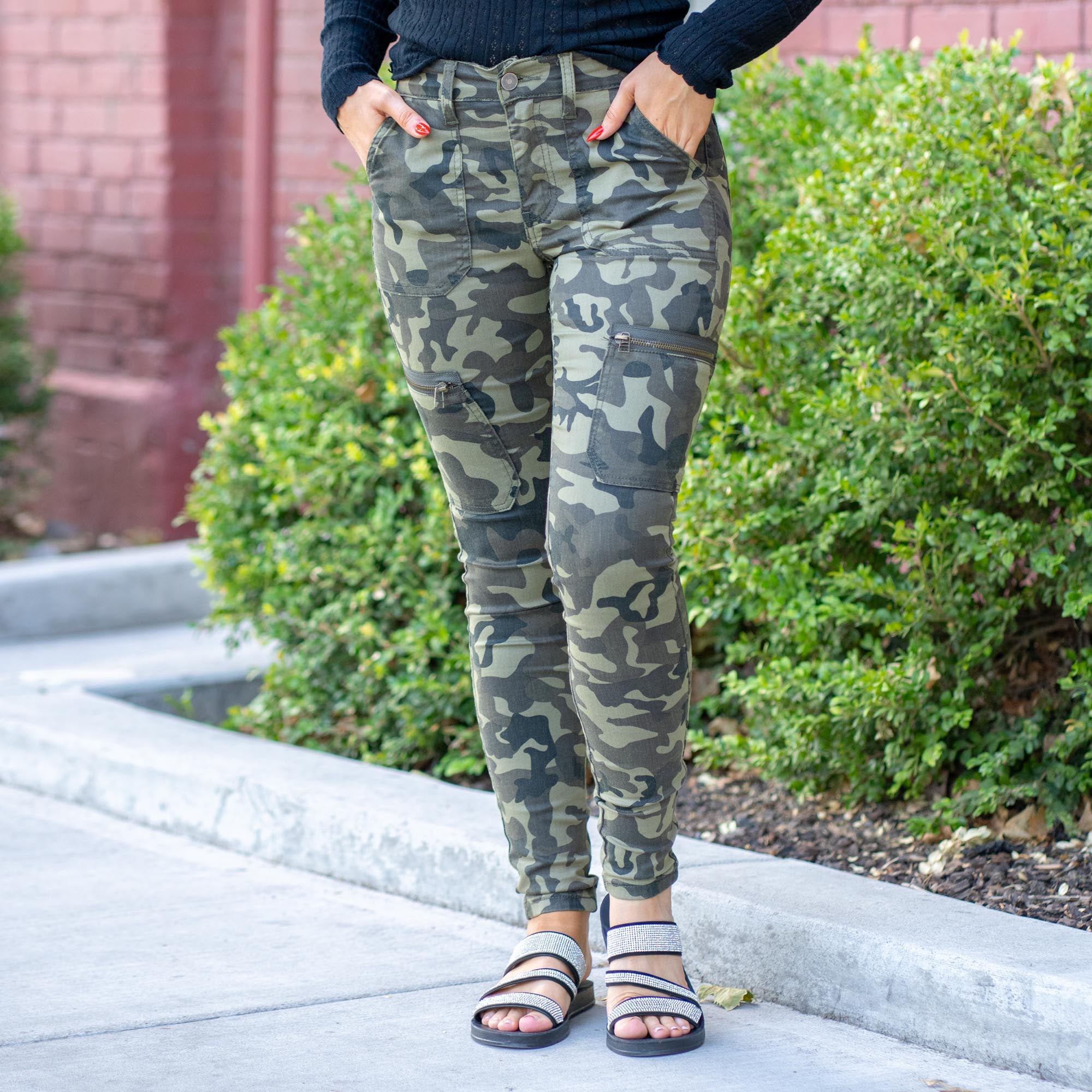 KanCan Arden Camo High Rise Cargo Super Skinny Camouflage Green
