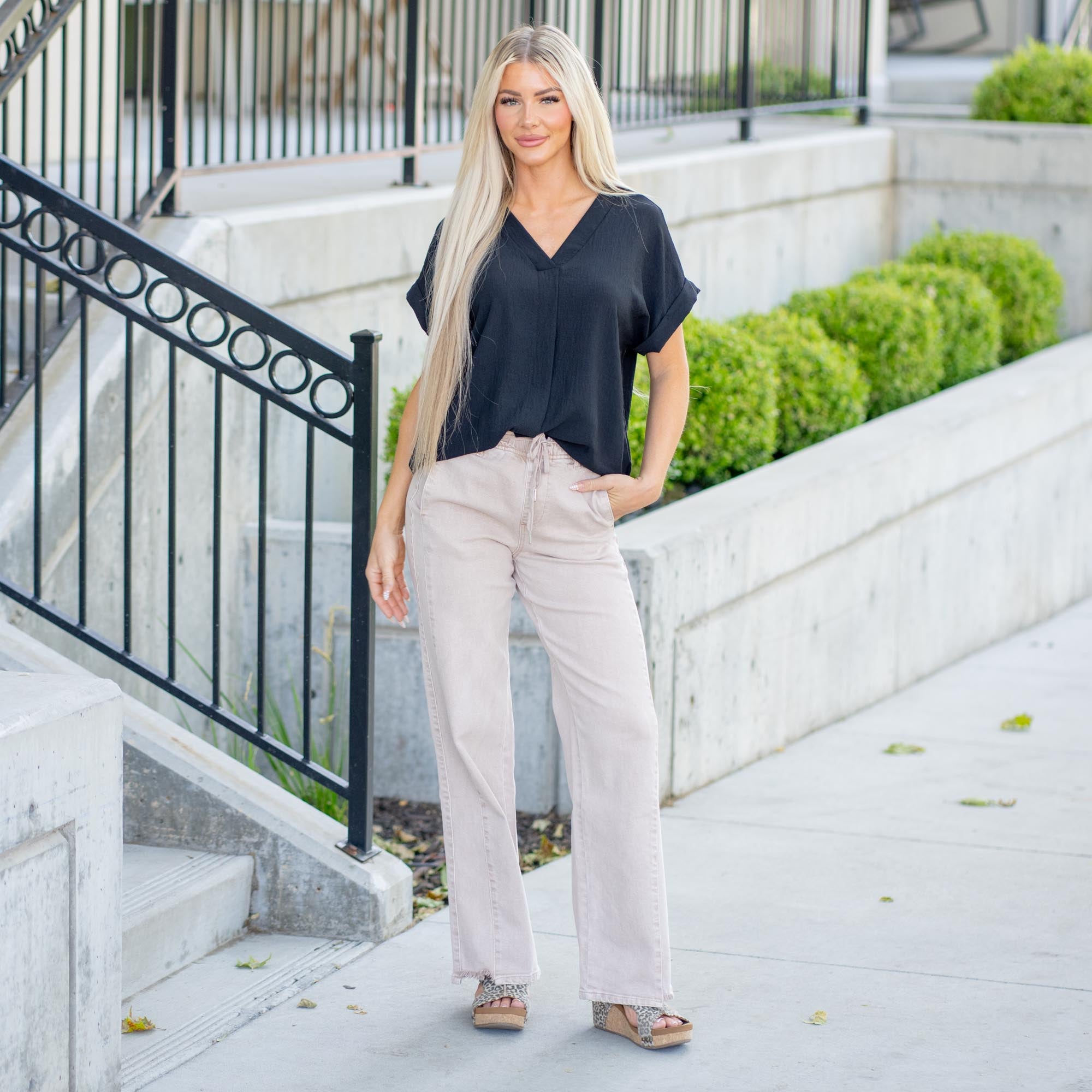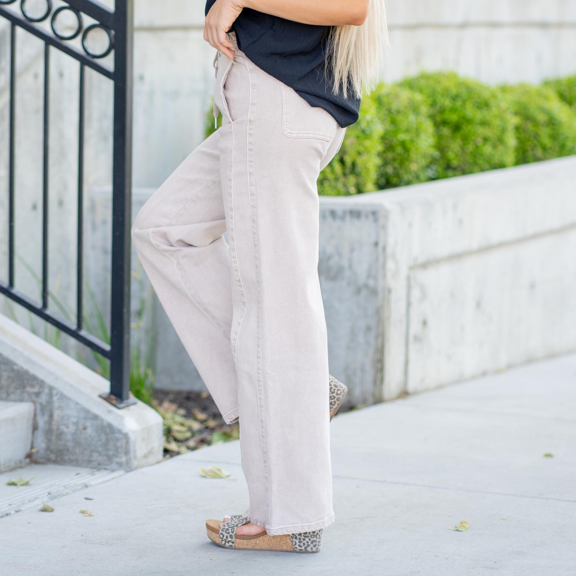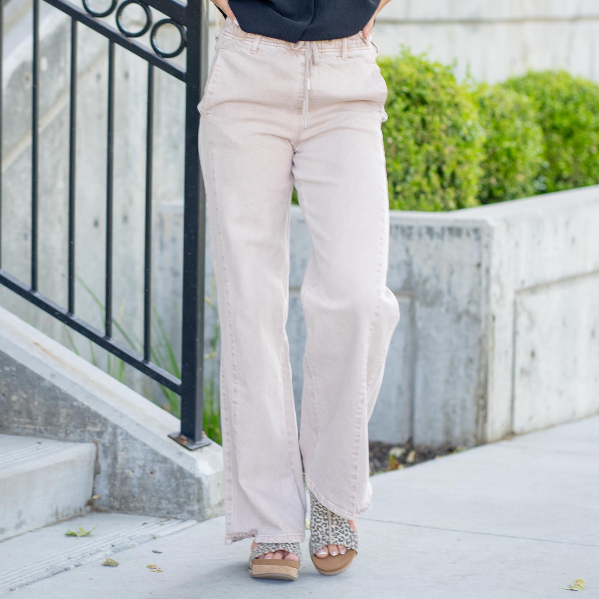 KanCan Margot High Rise Wide Leg Jeans – Draw-Cord Waist, Elastic Back, Classic Hem