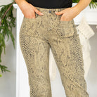 KanCan Renae Mid Rise Snakeskin Wide Leg Jeans Olive