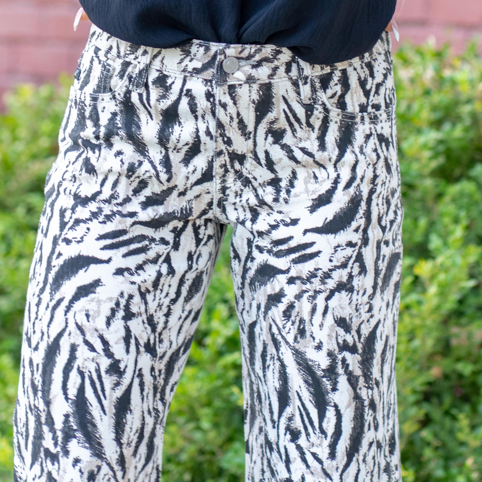 KanCan Alonso Mid Rise Printed Crop Wide Leg Jeans Beige Wash
