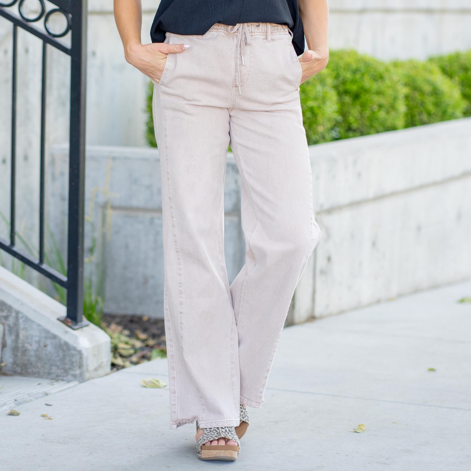 KanCan Margot High Rise Wide Leg Jeans – Draw-Cord Waist, Elastic Back, Classic Hem
