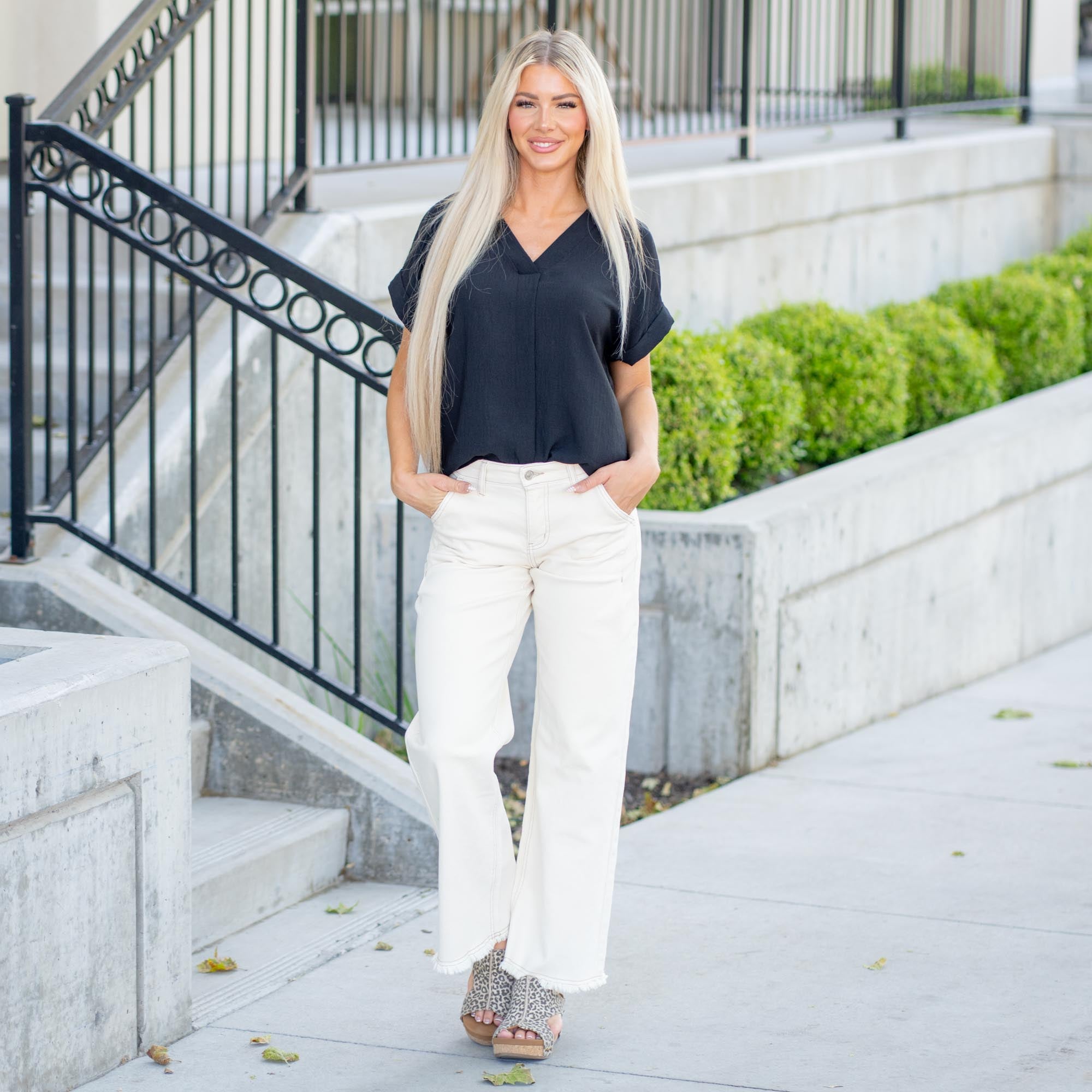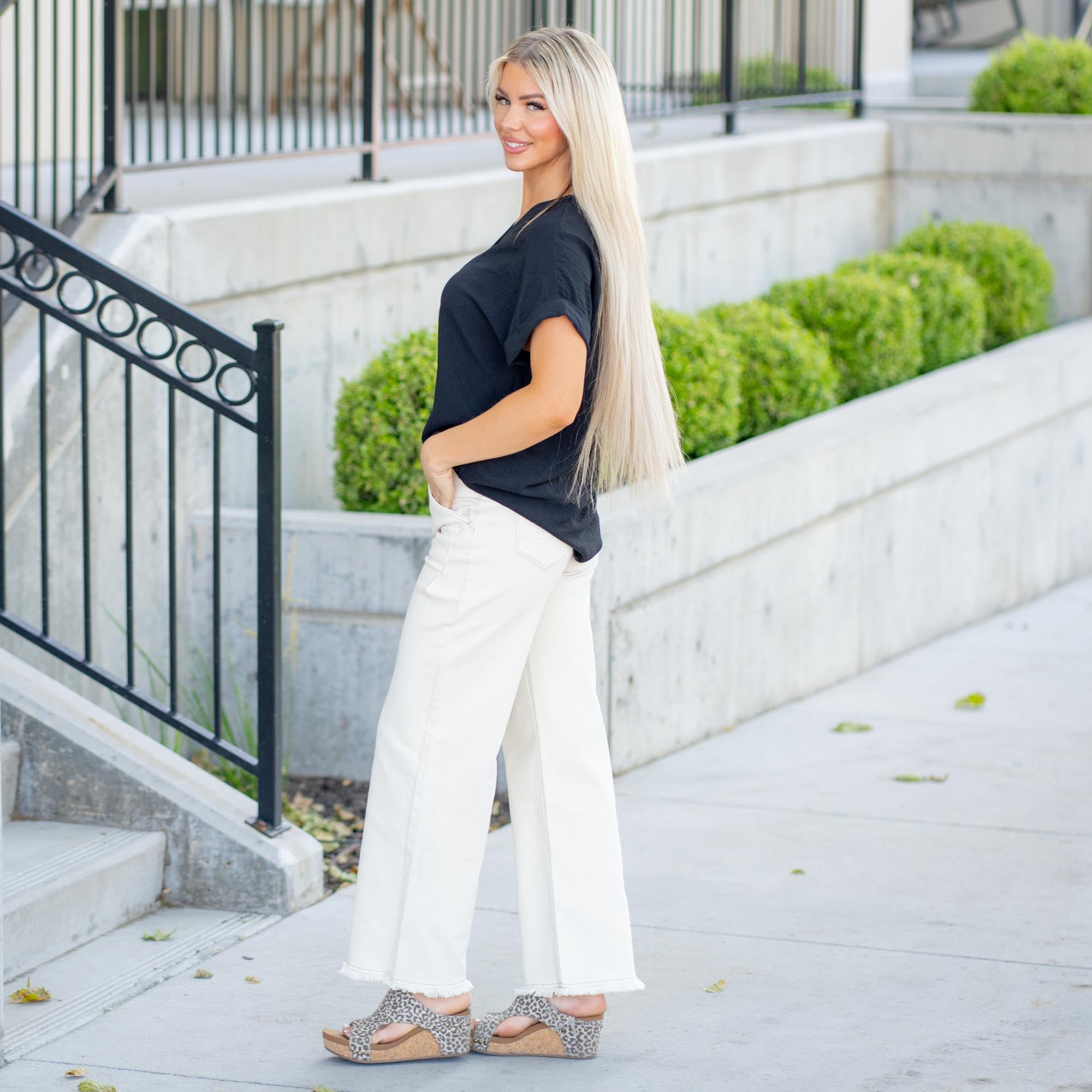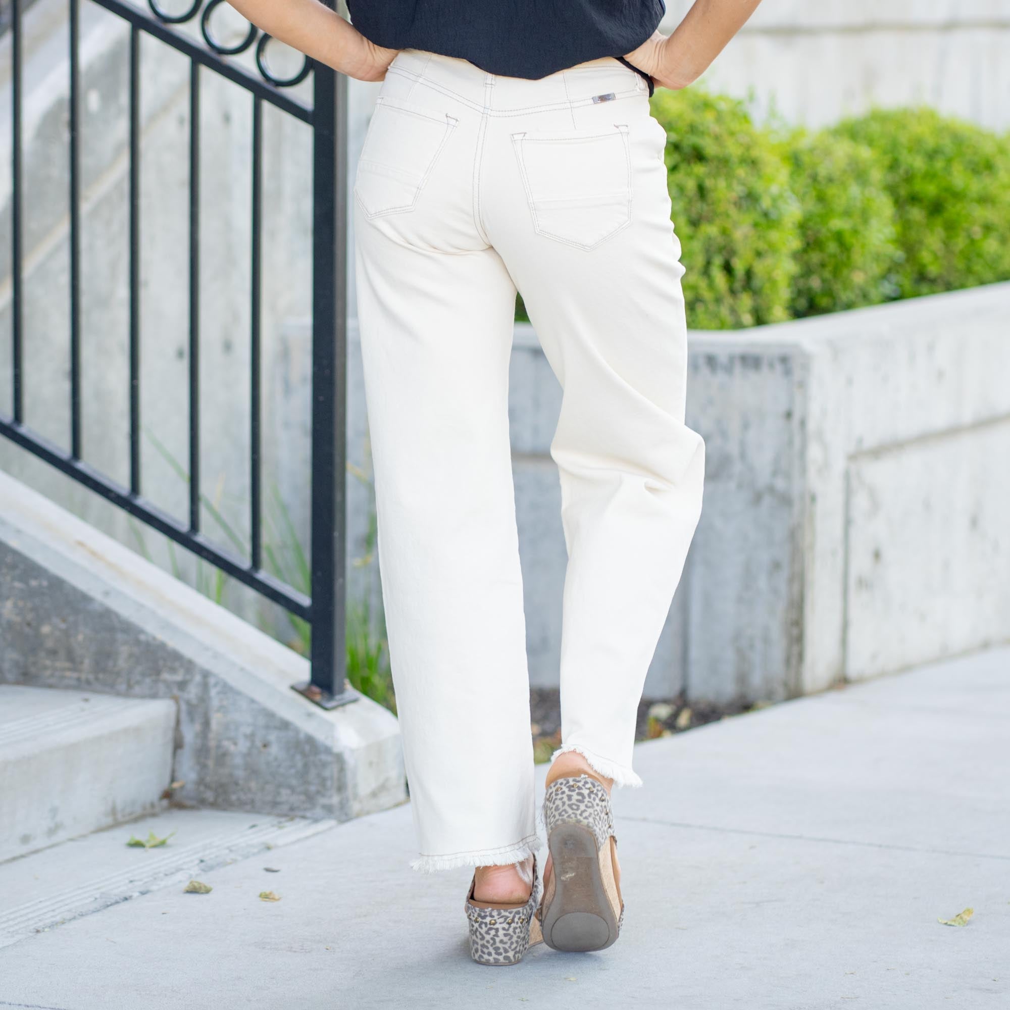 The Grace High Rise Wide Jeans bring a fresh, elevated twist to wide-leg denim with their standout cream hue. Crafted from soft, premium denim, this pair offers comfort, ease of movement, and an effortlessly chic drape.