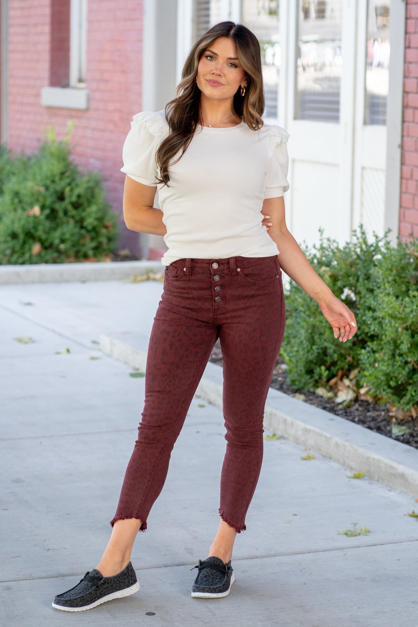 KanCan Tayona High Rise Leopard Print Skinny Jeans Burgundy