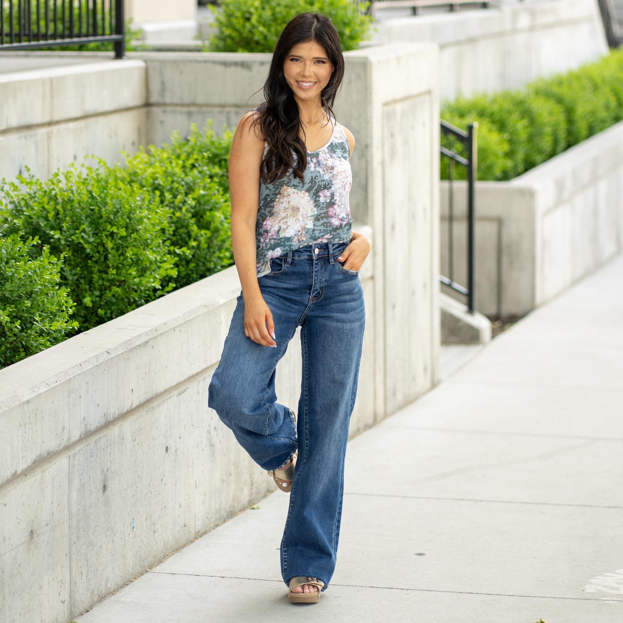 Meet your new go-to for elevated denim days. The Teria High Rise Wide Leg features a clean dark wash with rich, saturated tones that offer a sleek, polished look. Designed with comfort stretch fabric, this pair moves with you while maintaining its shape wear after wear. Sitting at the waist with a snug fit through the hips, it opens into a wide leg for a flattering, elongating effect. Finished with a classic button and zip fly, and zero distressing for timeless versatility.