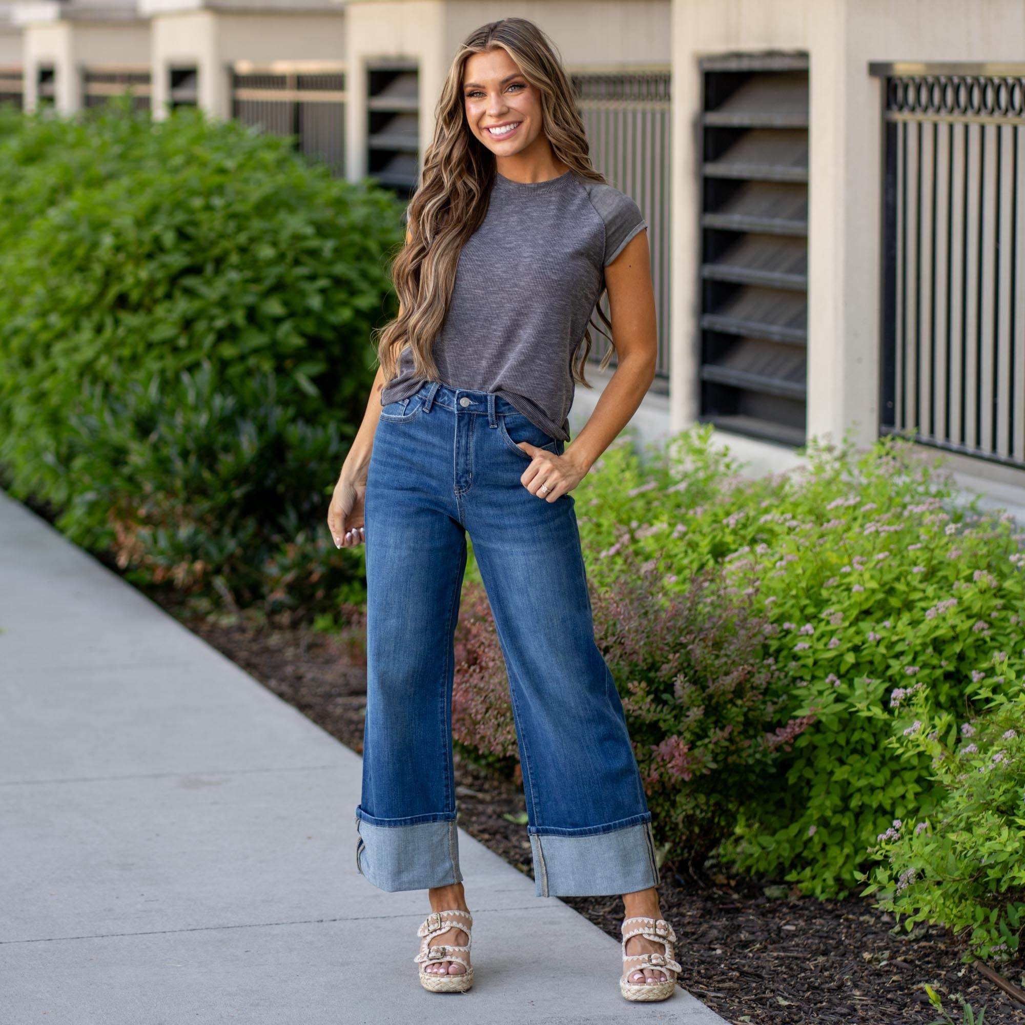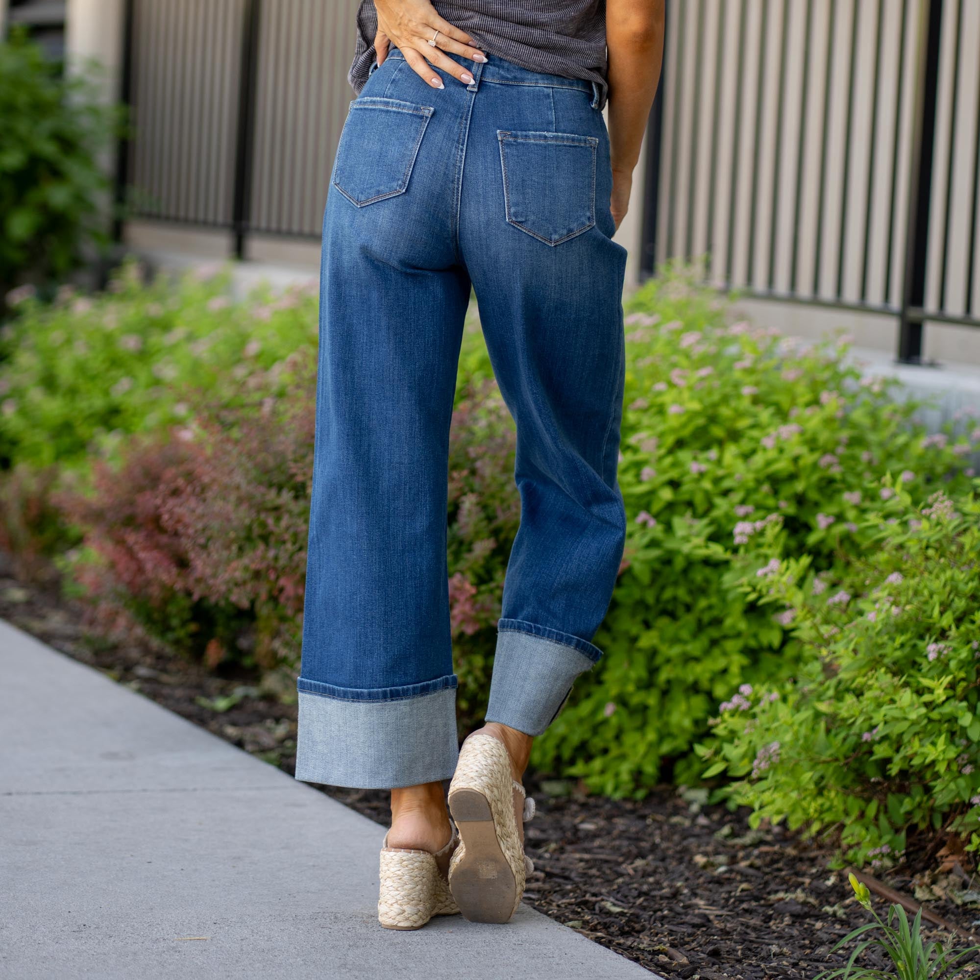 Well-Balanced High Rise Raw Hem Crop Slim Wide Leg