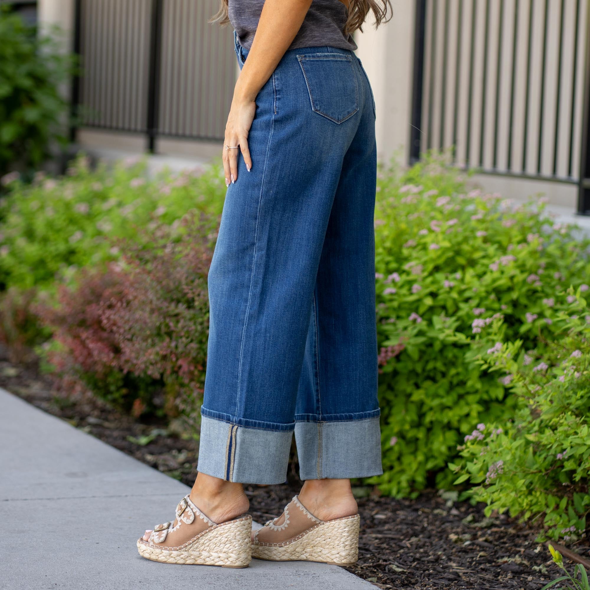 KanCan Delia Essentials High Rise Crop Wide Leg Dark Blue Wash
