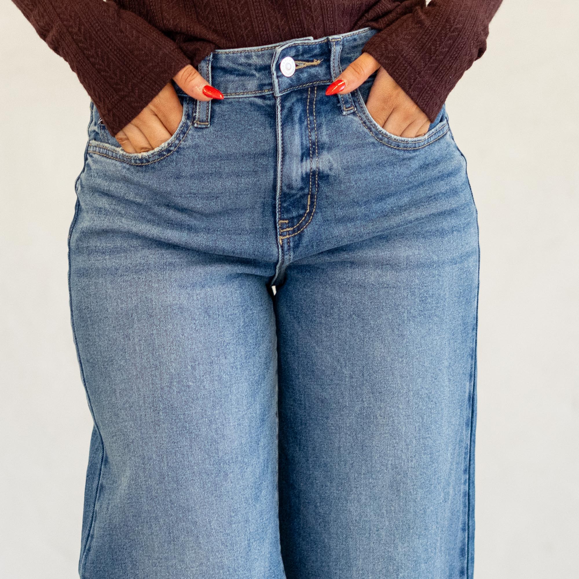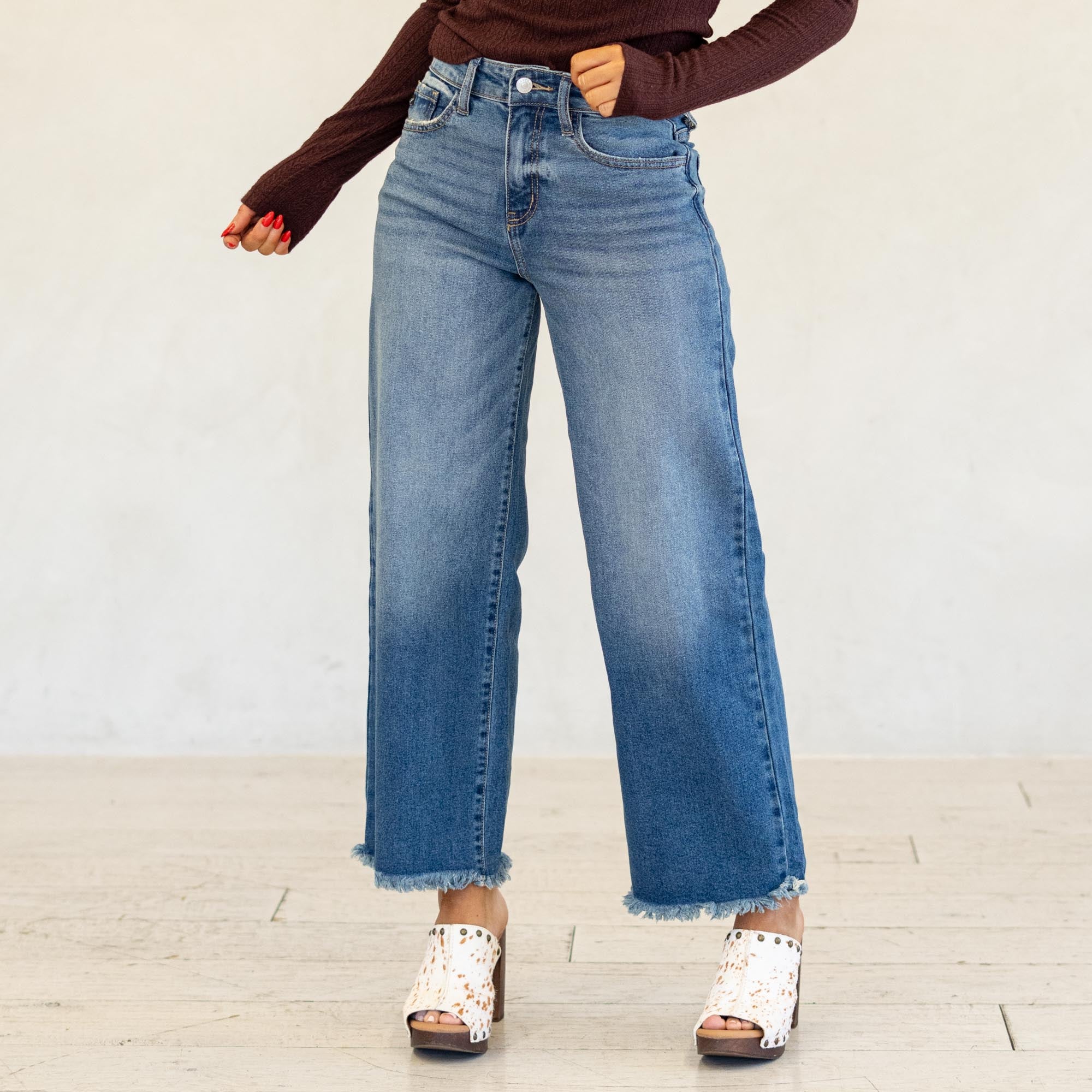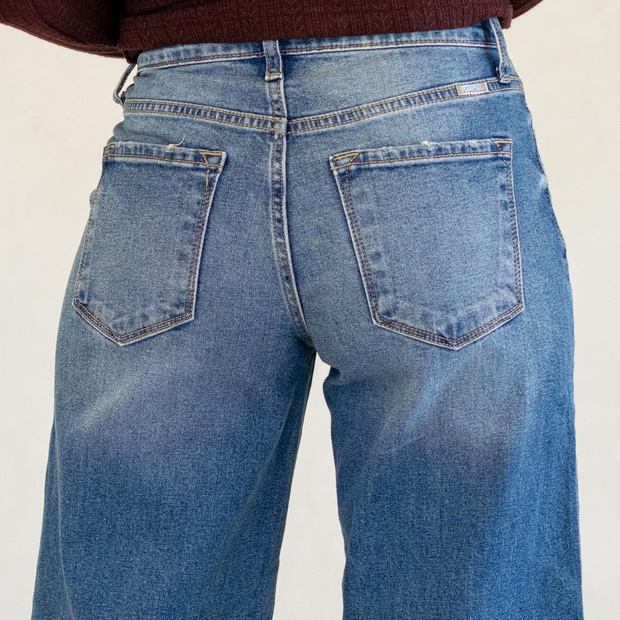 KanCan Aruli Essentials High Rise Cropped Wide Leg Jeans Medium Blue Wash