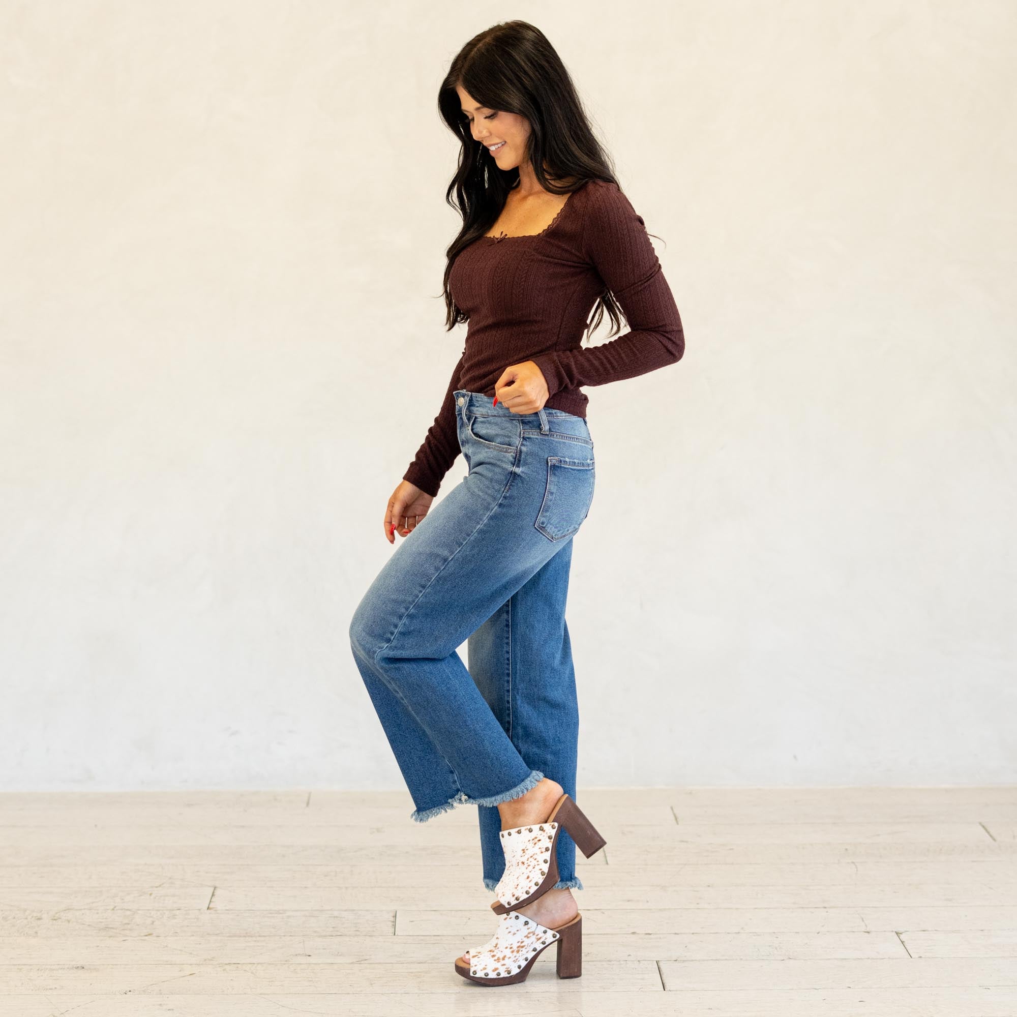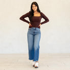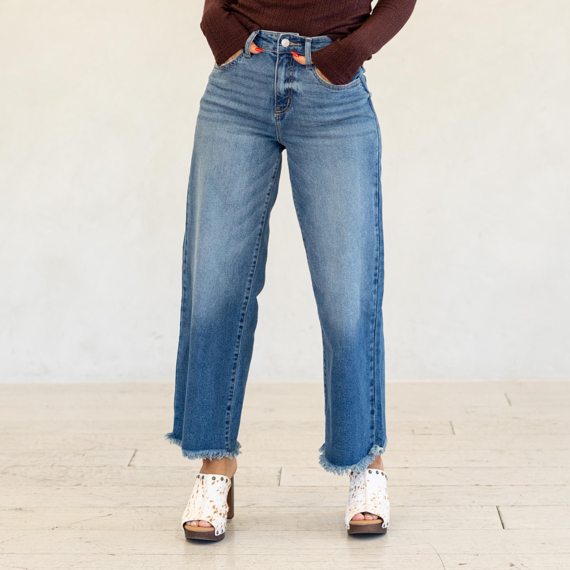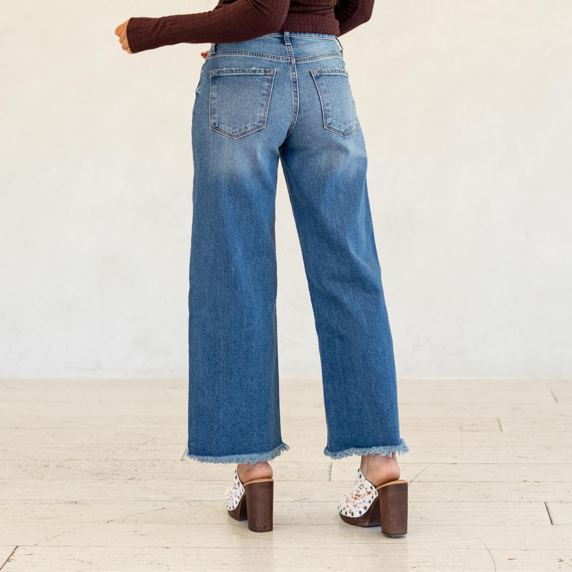 KanCan Aruli Essentials High Rise Cropped Wide Leg Jeans Medium Blue Wash