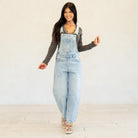 A front chest pocket, classic 5-pocket styling, and utility-inspired details make these overalls as practical as they are stylish. Pair them with a fitted tank, casual tee, or cozy knit to complete the look—perfect for everything from weekend errands to brunch with friends.