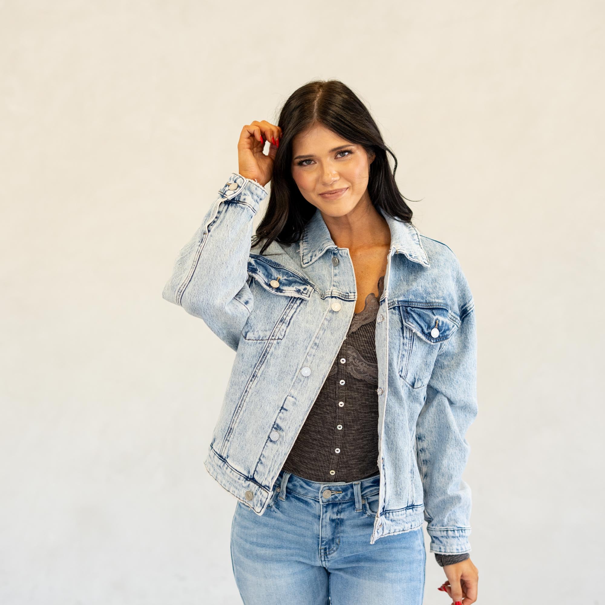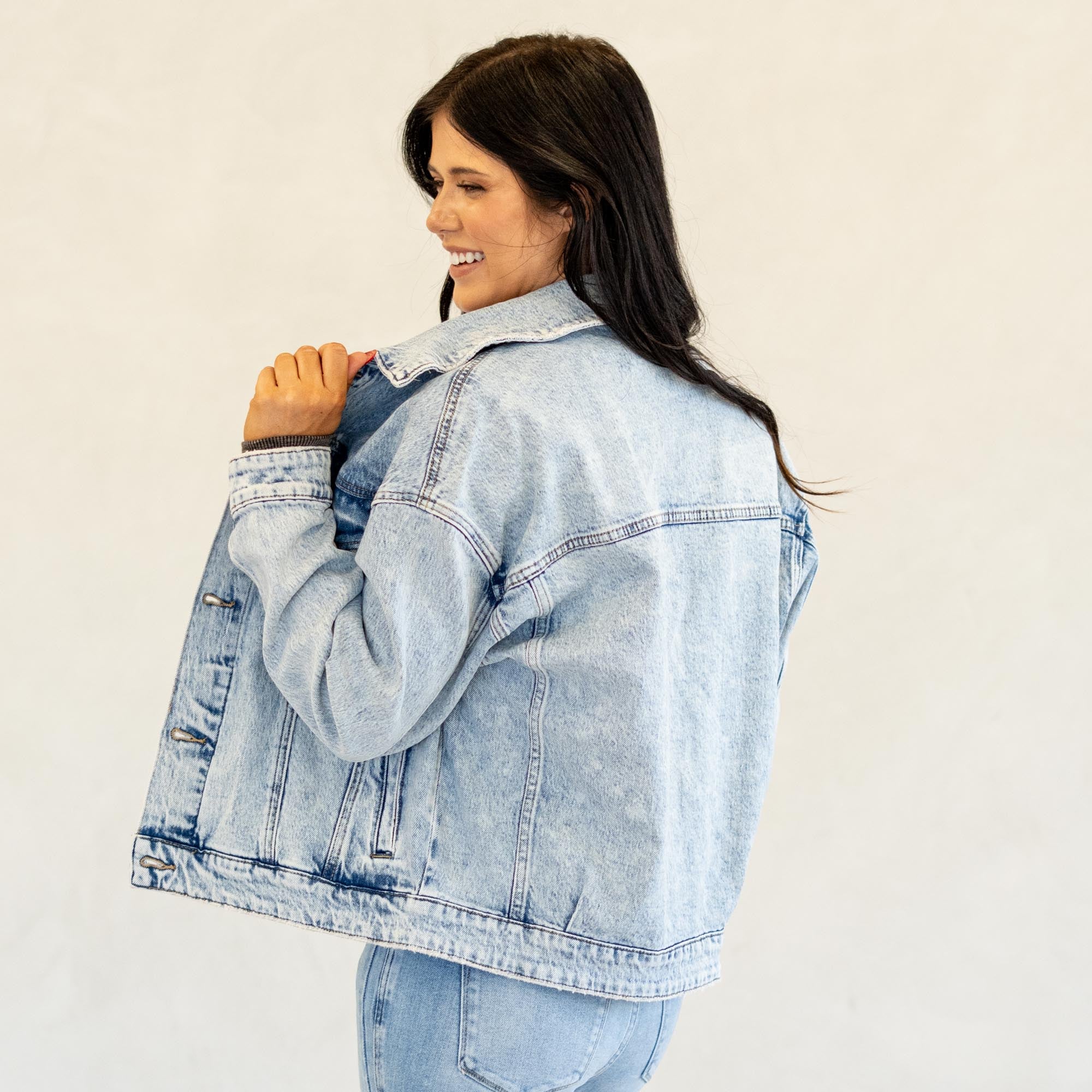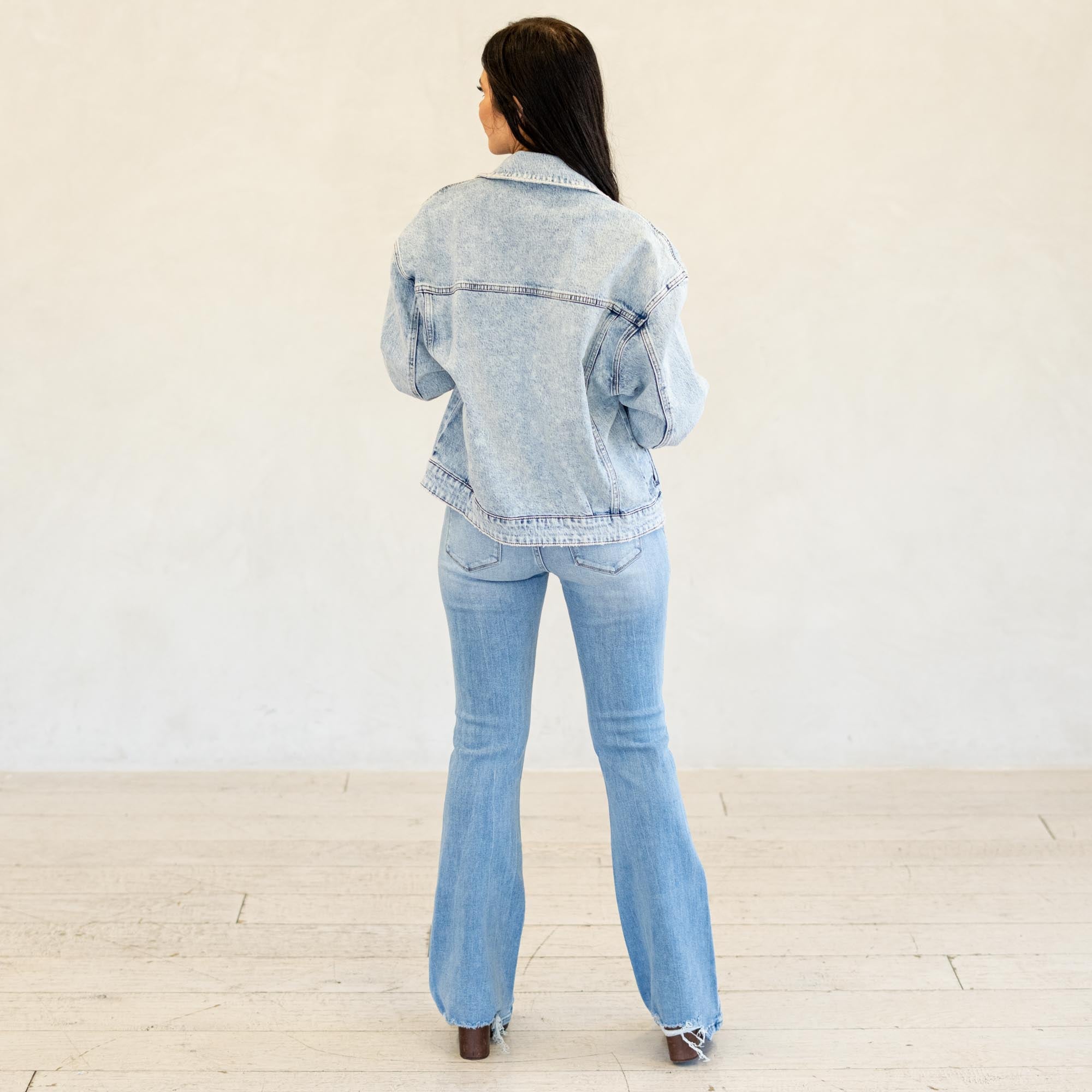 KanCan Illanie Oversized Denim Jacket Light Blue Wash