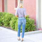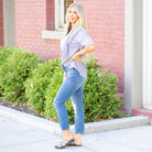 The medium wash is detailed with whiskering, fading, and distressed touches for that perfectly lived-in vibe. A classic five-pocket design, secure single-button closure, and zip fly complete the look. Pair the Kerrigan with sneakers and a graphic tee for casual days, or dress them up with a sleek blouse and heels for a chic, boutique-ready outfit.