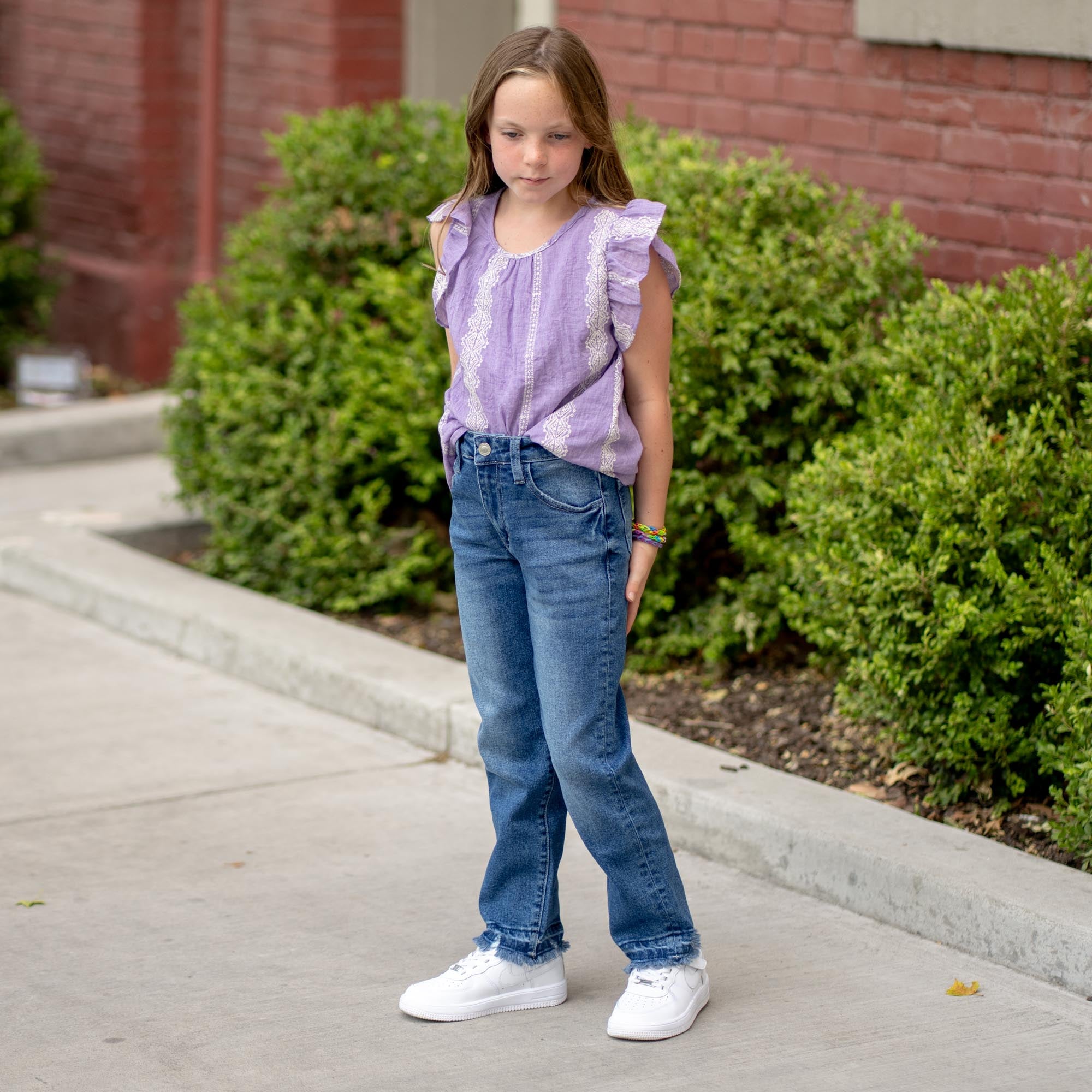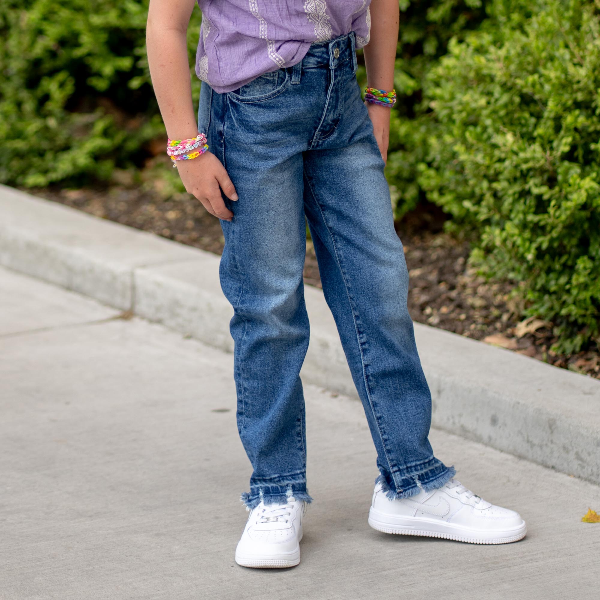Classic with a twist! The Royal High Rise Mini Straight Jeans come in a medium wash with soft fading and whiskering for that perfectly worn-in feel. Finished with a released hem and a classic five-pocket design, these jeans offer a modern straight-leg fit that’s comfy and cool for everyday wear. Zip fly with button closure keeps it all secure and stylish.