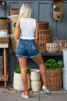 Melani High Rise Distressed Mom Shorts