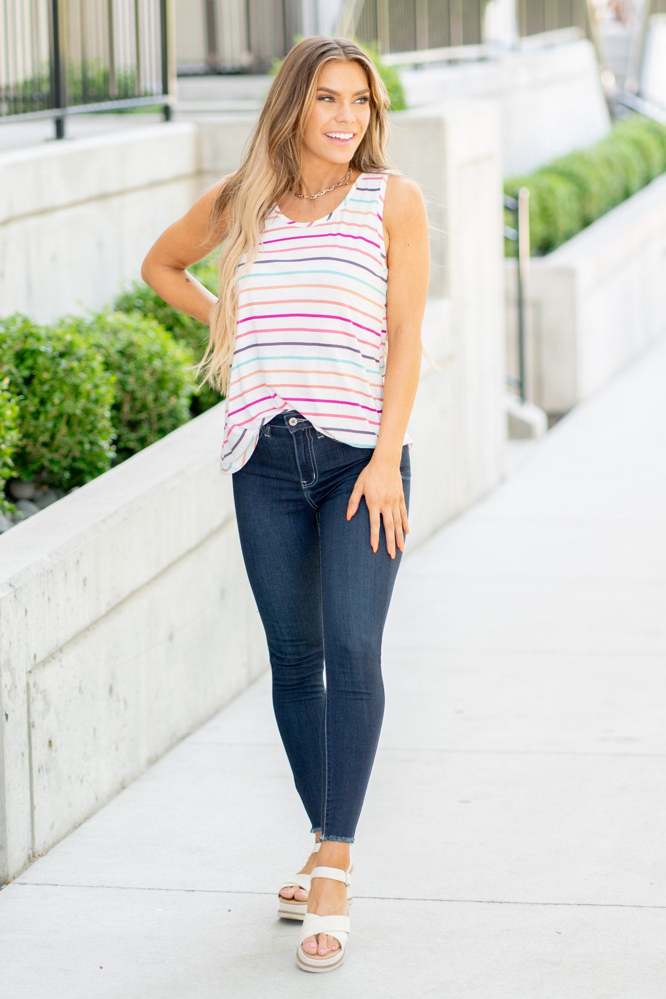 Meet your new favorite: our Phoebe High Rise Ankle Skinny Jeans! These dark denim skinnies sit perfectly above the natural waistline and hug your hips, thighs, and calves for a sleek, form-fitting silhouette. The cropped, frayed ankles add a trendy touch, perfect for showing off your favorite shoes and socks. Featuring the classic five-pocket style, a single-button front, and a zip-fly, these jeans are crafted from our soft, durable, and flexible stretch denim that stays snug and stylish all day long.