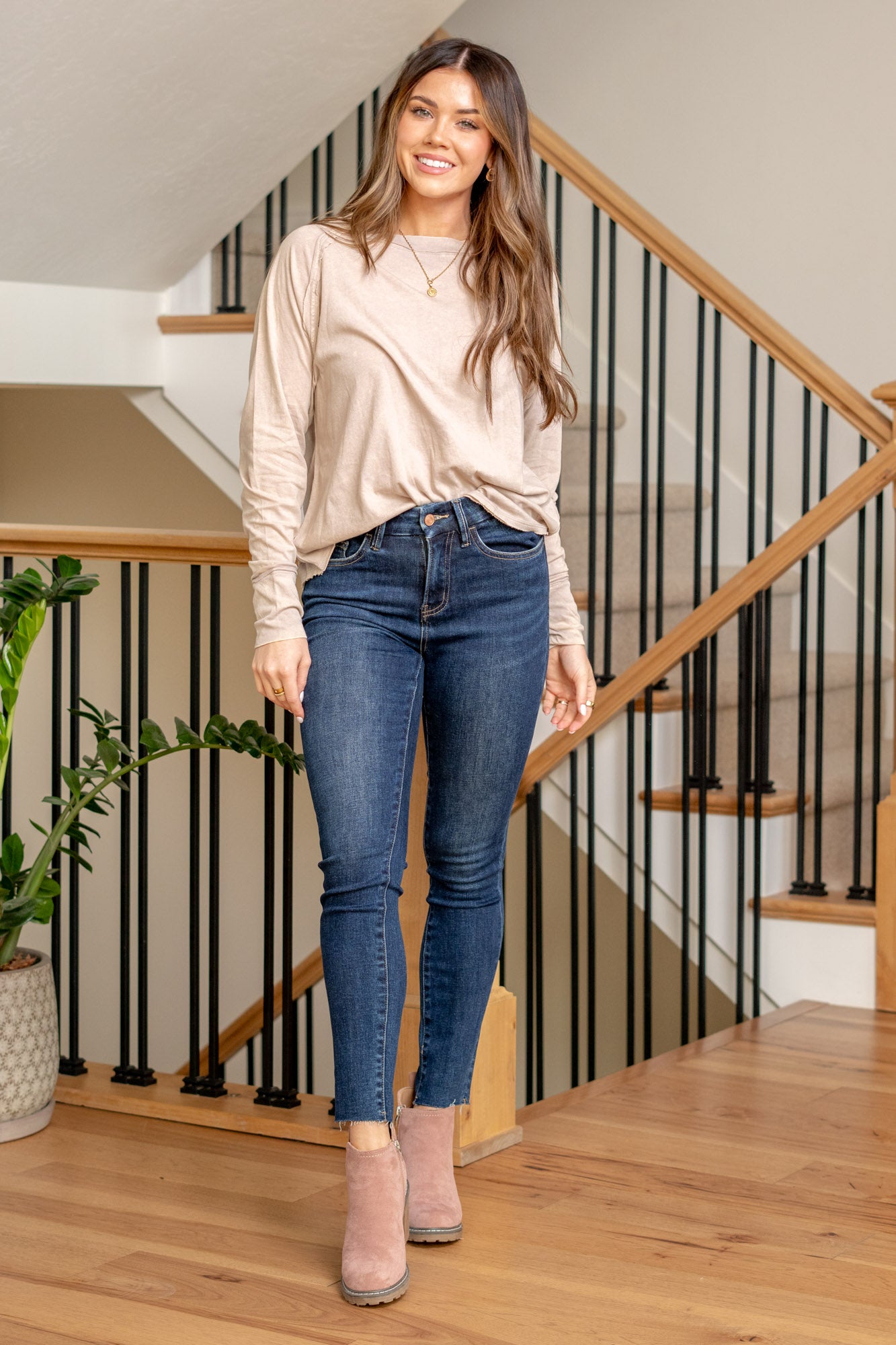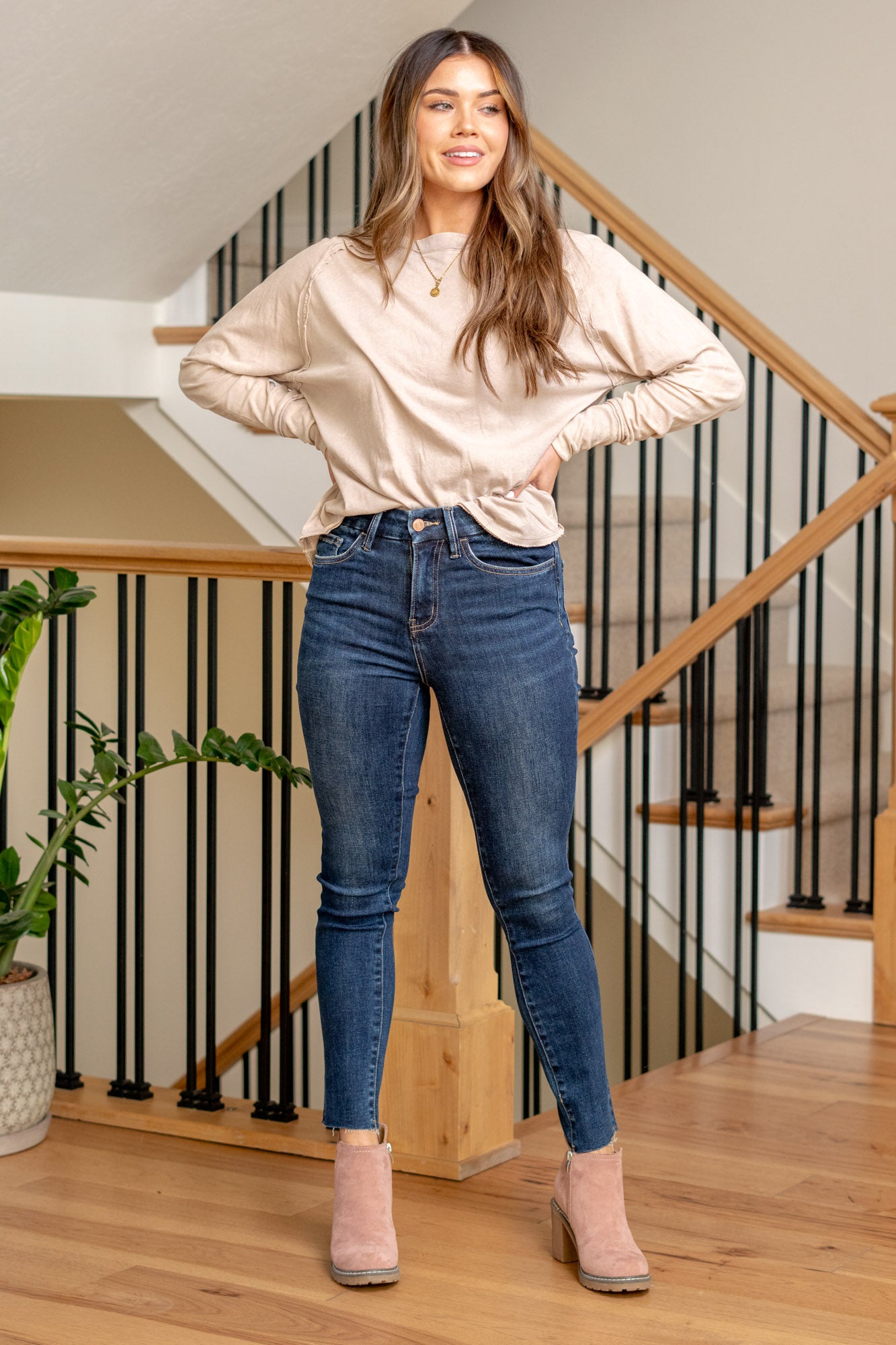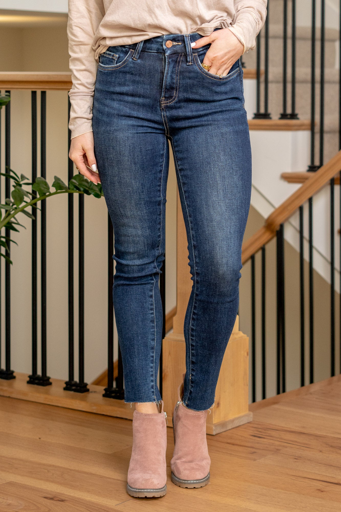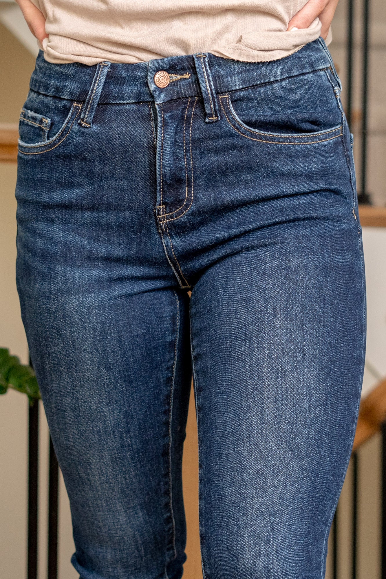 LOVERVET Parallel Lines High Rise Skinny Jeans Dark Blue Wash Regular & Plus Sizes