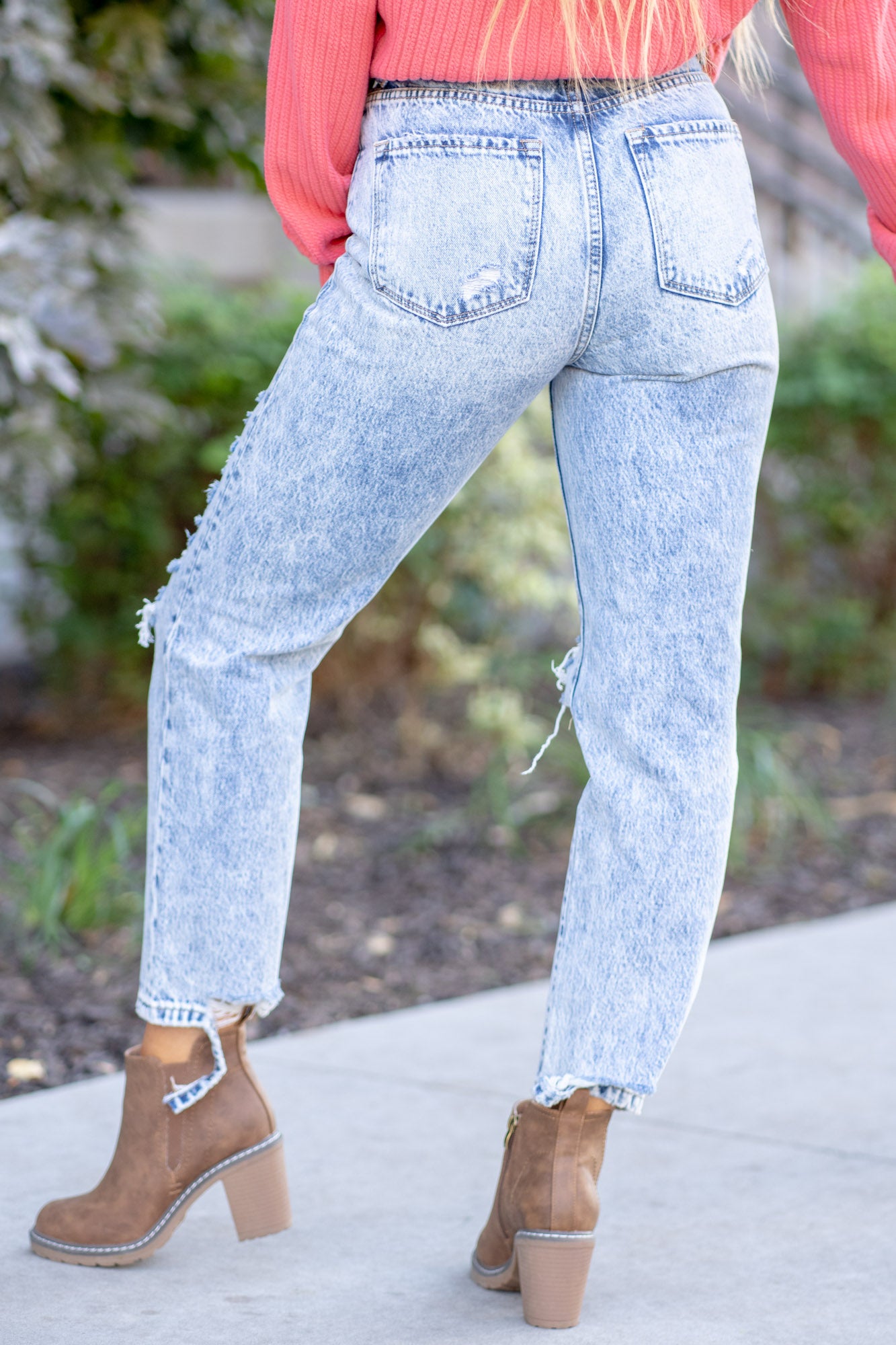 Kenzie High Rise Distressed Mom Skinny with Frayed Hem