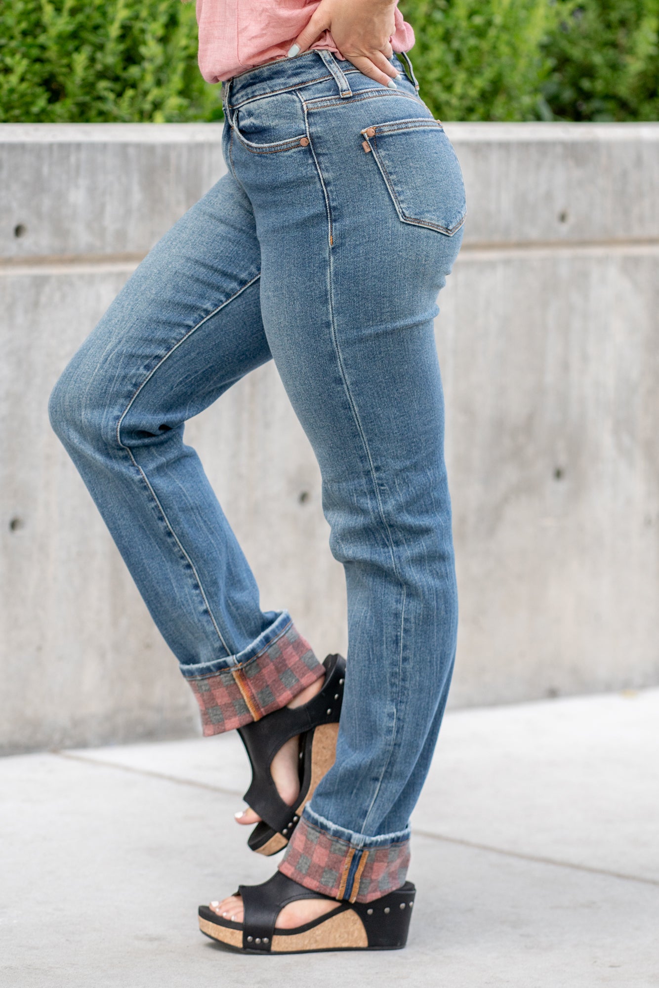 Plus Size Plaid Cuffed High Rise Cuffed Straight Leg (Long Inseam Option)