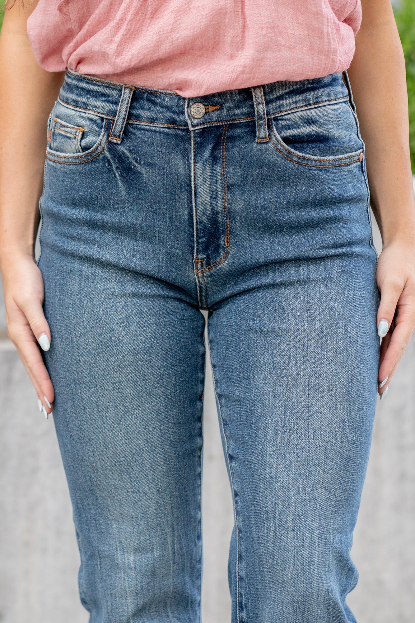 Judy Blue Plus Size Therma Denim High Rise Contrast Wash Straight Leg Medium Blue