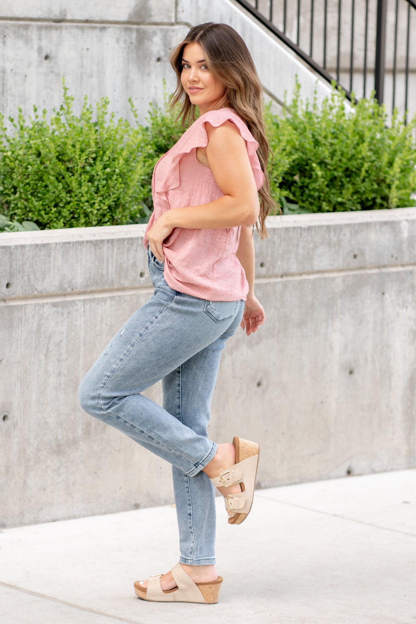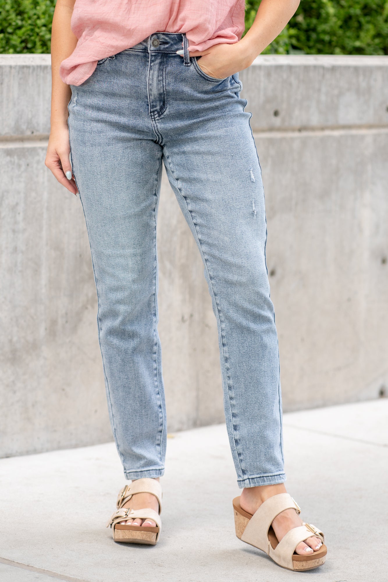 Pair this mild distressed slim fit with all of your boots and crop tops this fall.