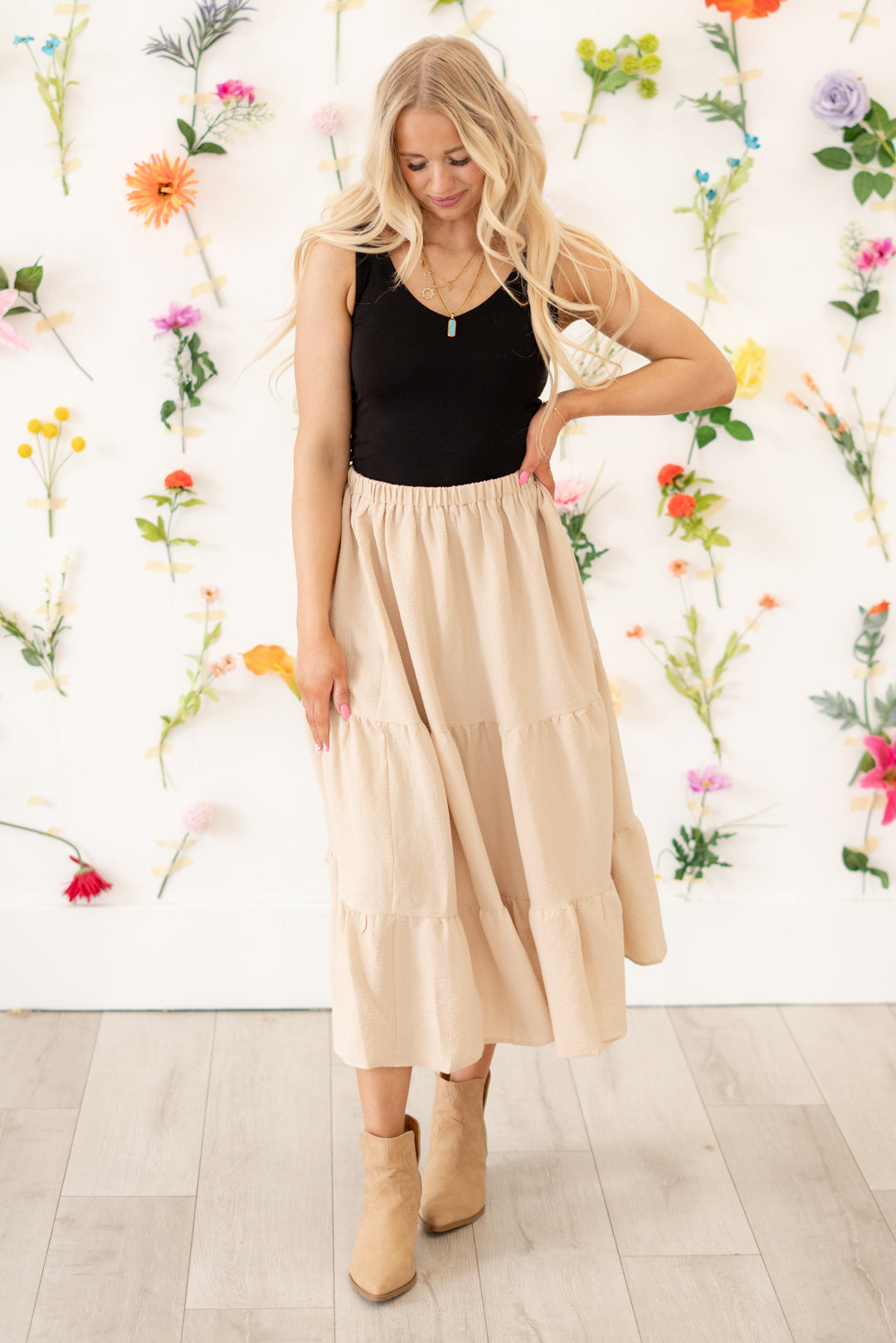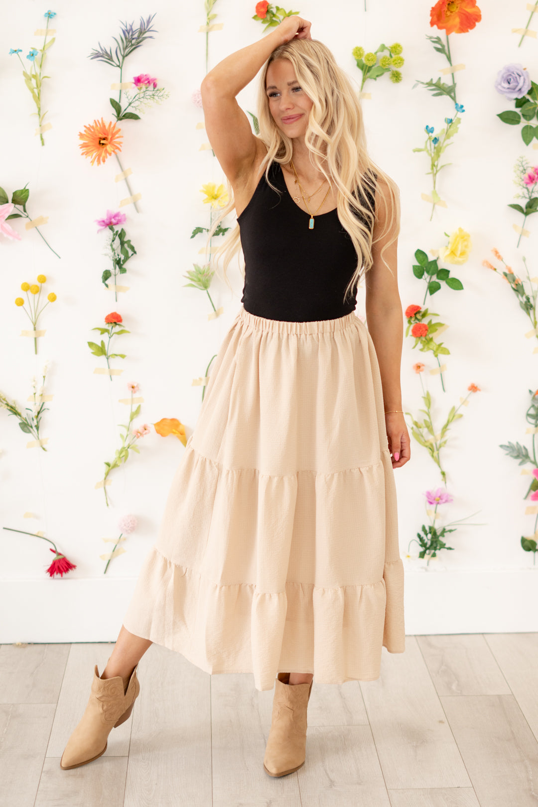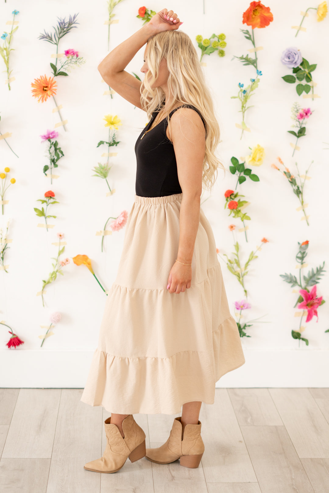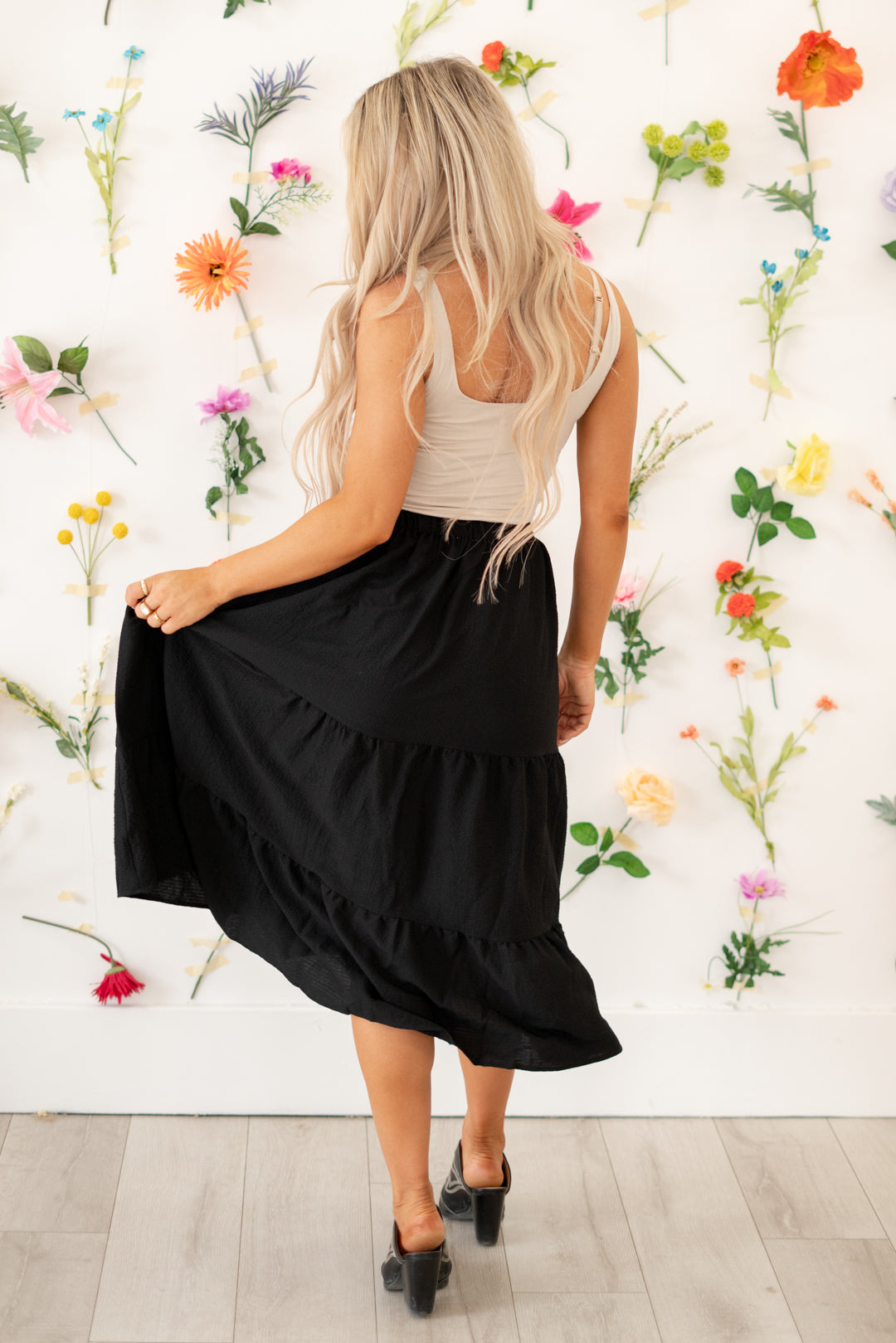 KanCan Kate Light Blue Tiered Midi Dress with Adjustable Straps