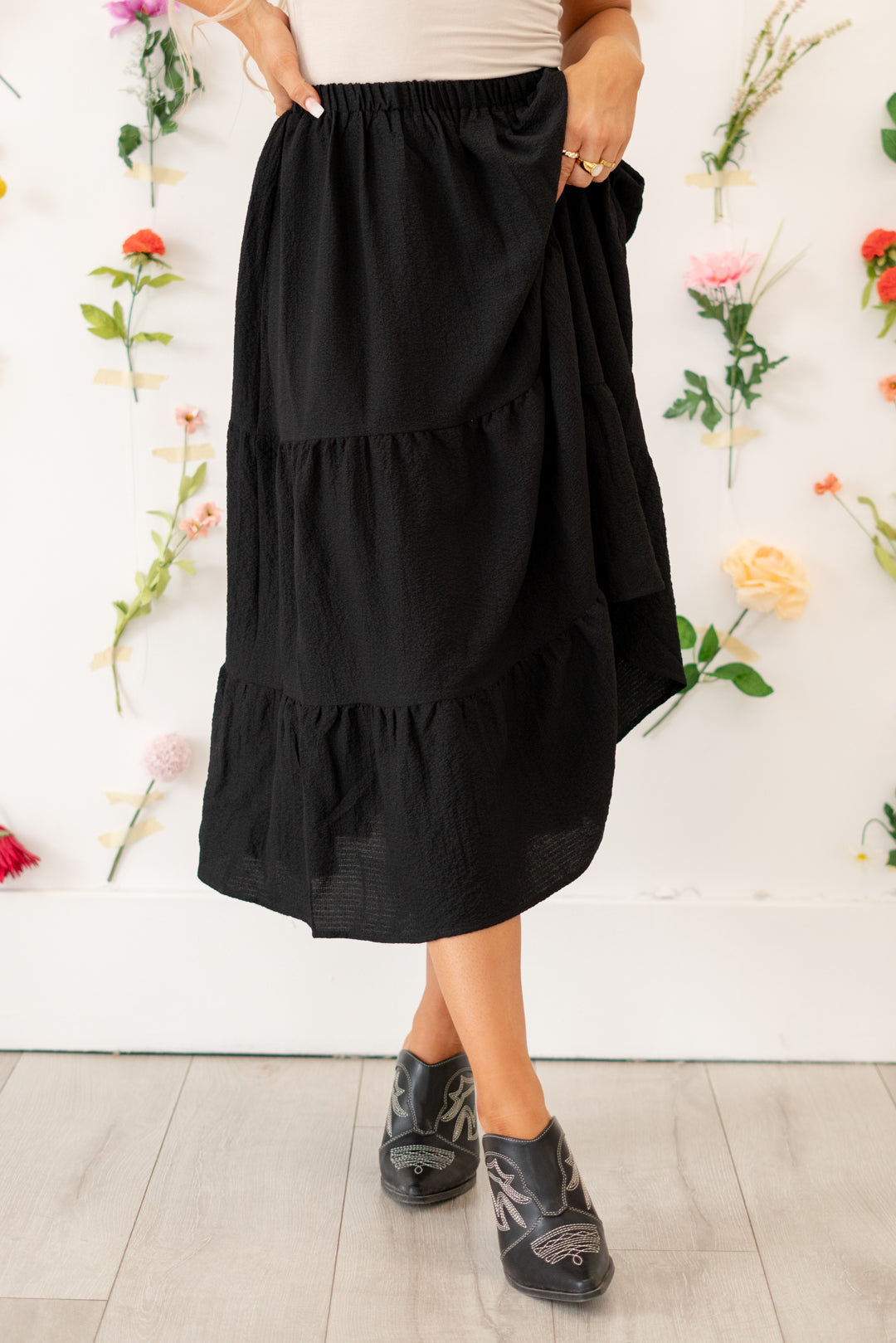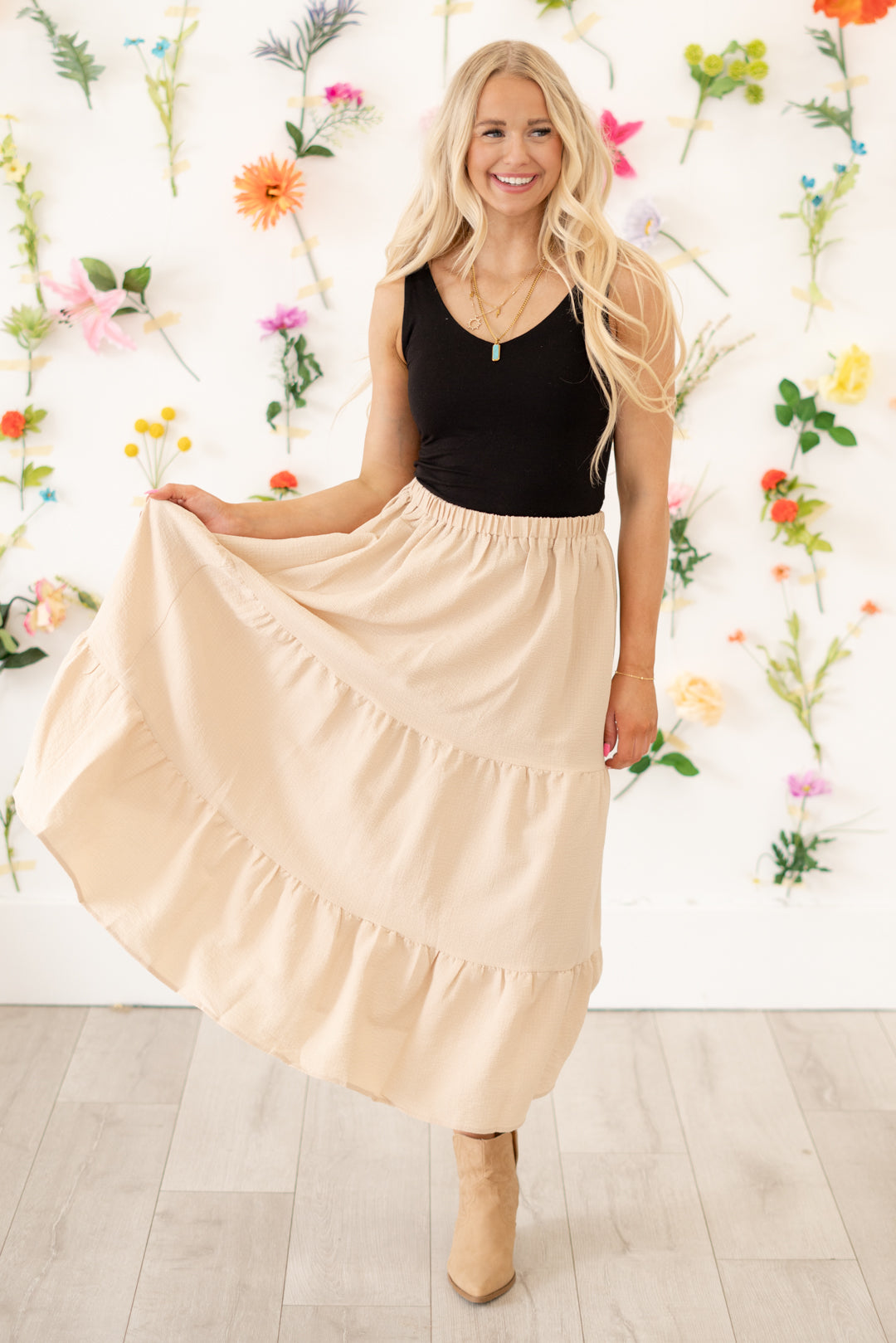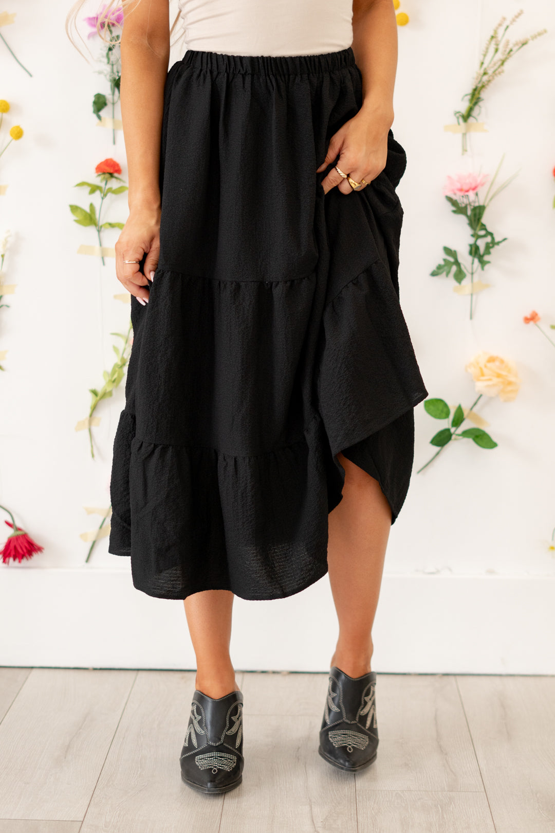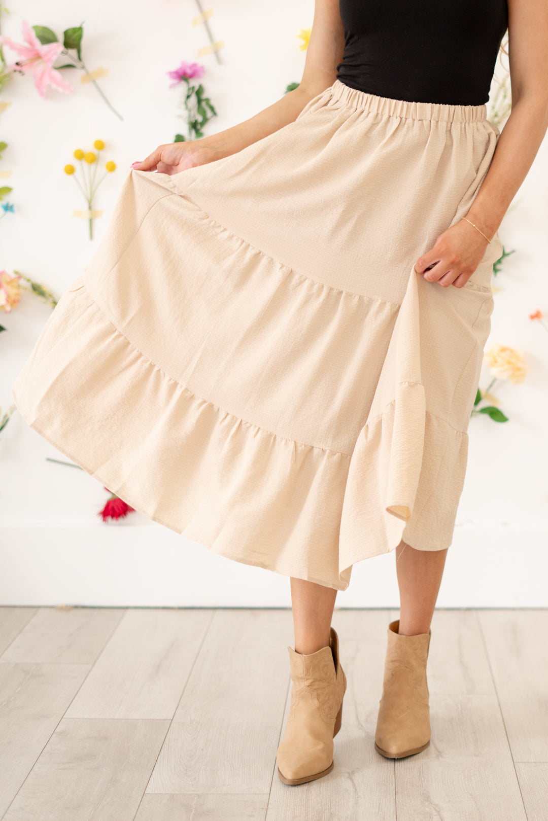 KanCan Kate Light Blue Tiered Midi Dress with Adjustable Straps