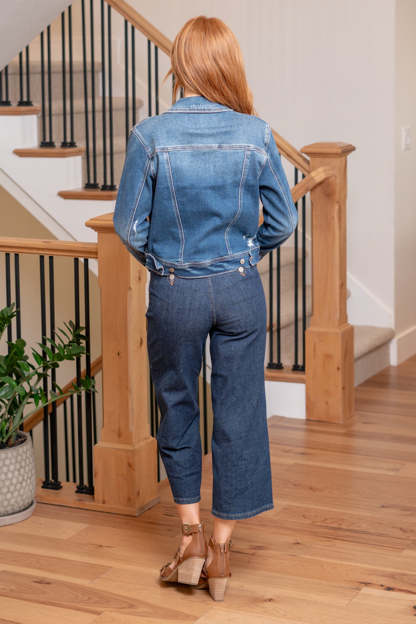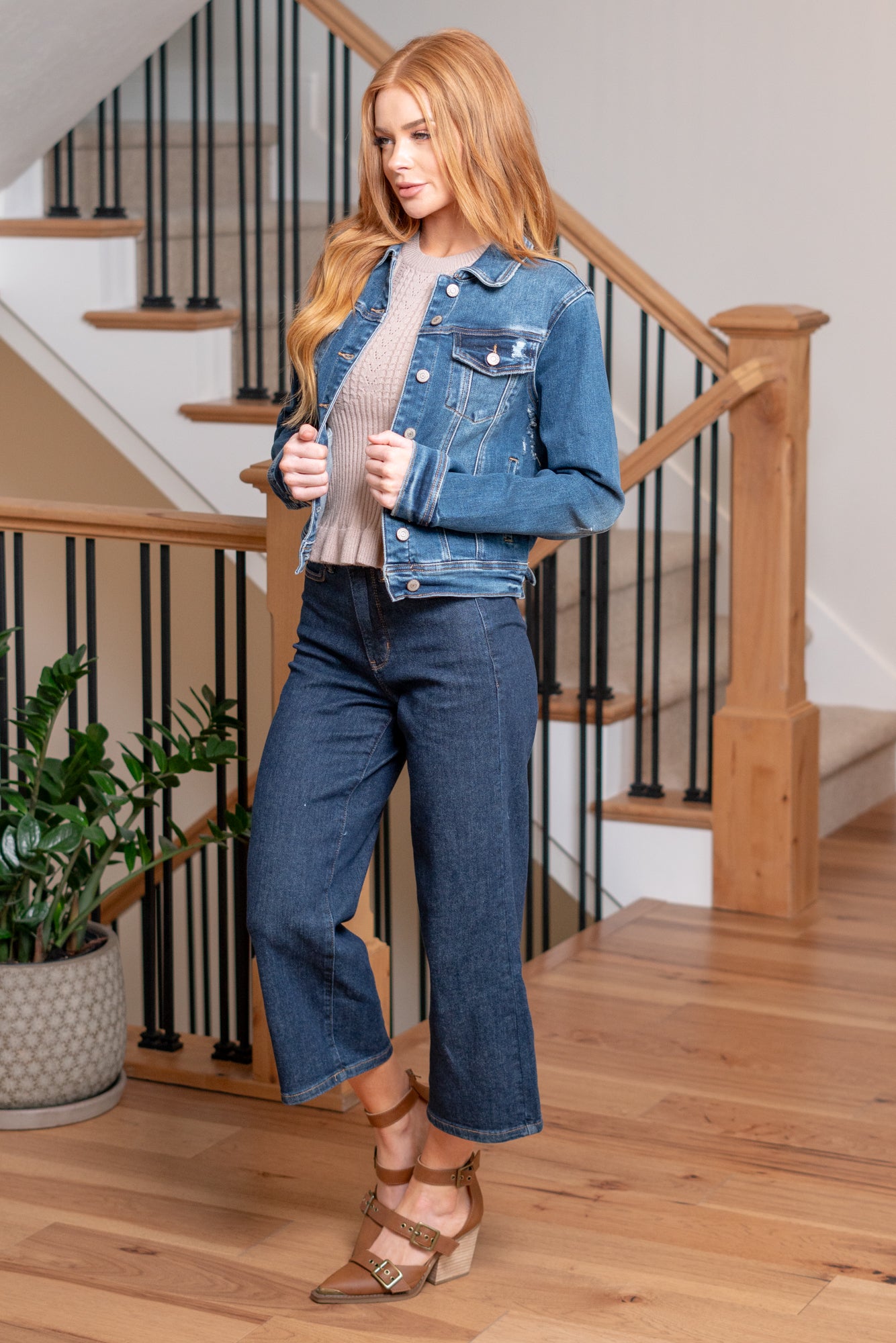Cameron Denim Jacket - The wardrobe essential with a touch of edge. This jacket features classic denim styling with distressed detailing, adding a trendy and rugged vibe to your look. Perfect for effortlessly elevating your casual outfits and bringing a cool, laid-back element to your wardrobe.
