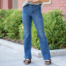 Step into timeless chic with the Harper Mid Rise Trouser Bootcut Jeans. Designed with Judy Blue’s tummy control technology, these jeans smooth and flatter while keeping you comfortable all day long. The clean trouser hem and welt pocket detailing give them a polished finish, perfect for when you want denim that works just as easily for date night as it does for casual Fridays.