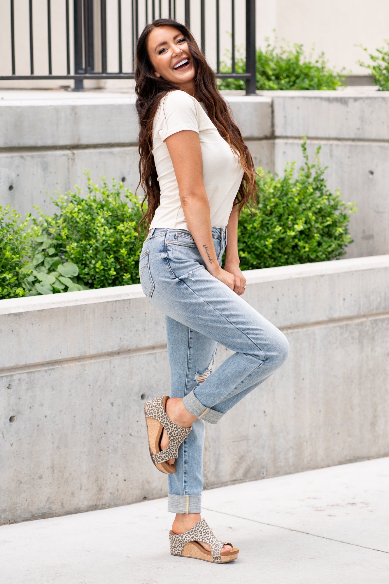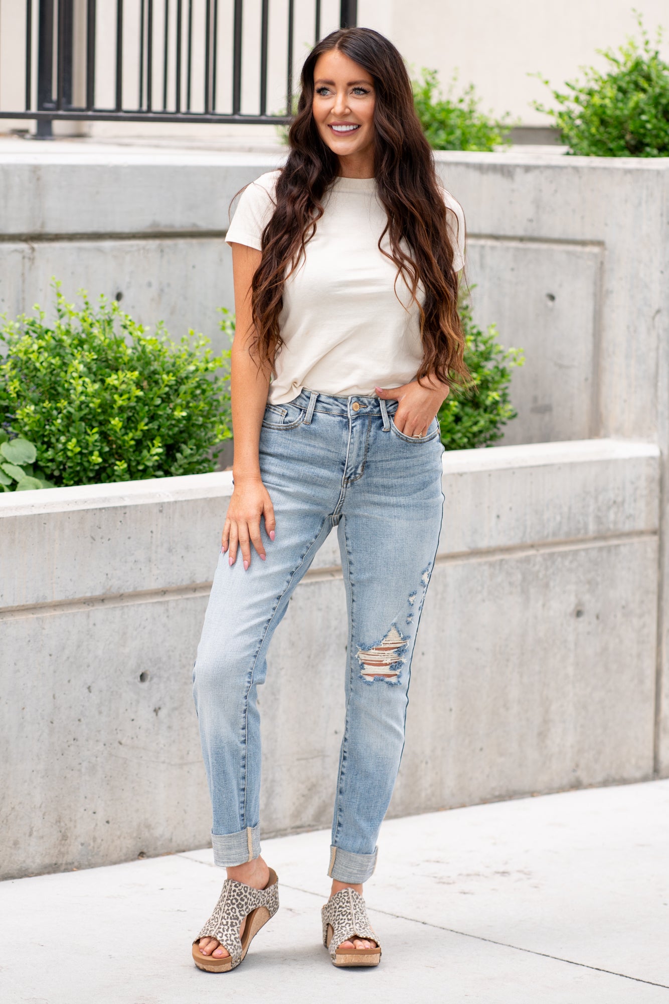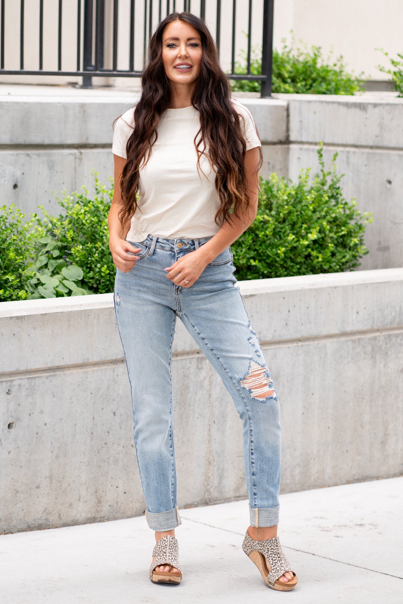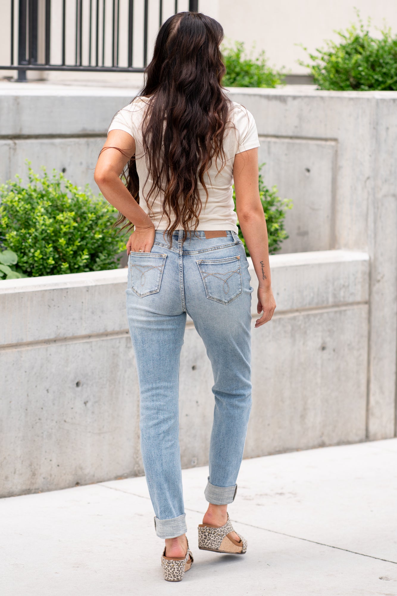 Plus Size Teagan Mid Rise Cuffed Boyfriend (Long Inseam Option)