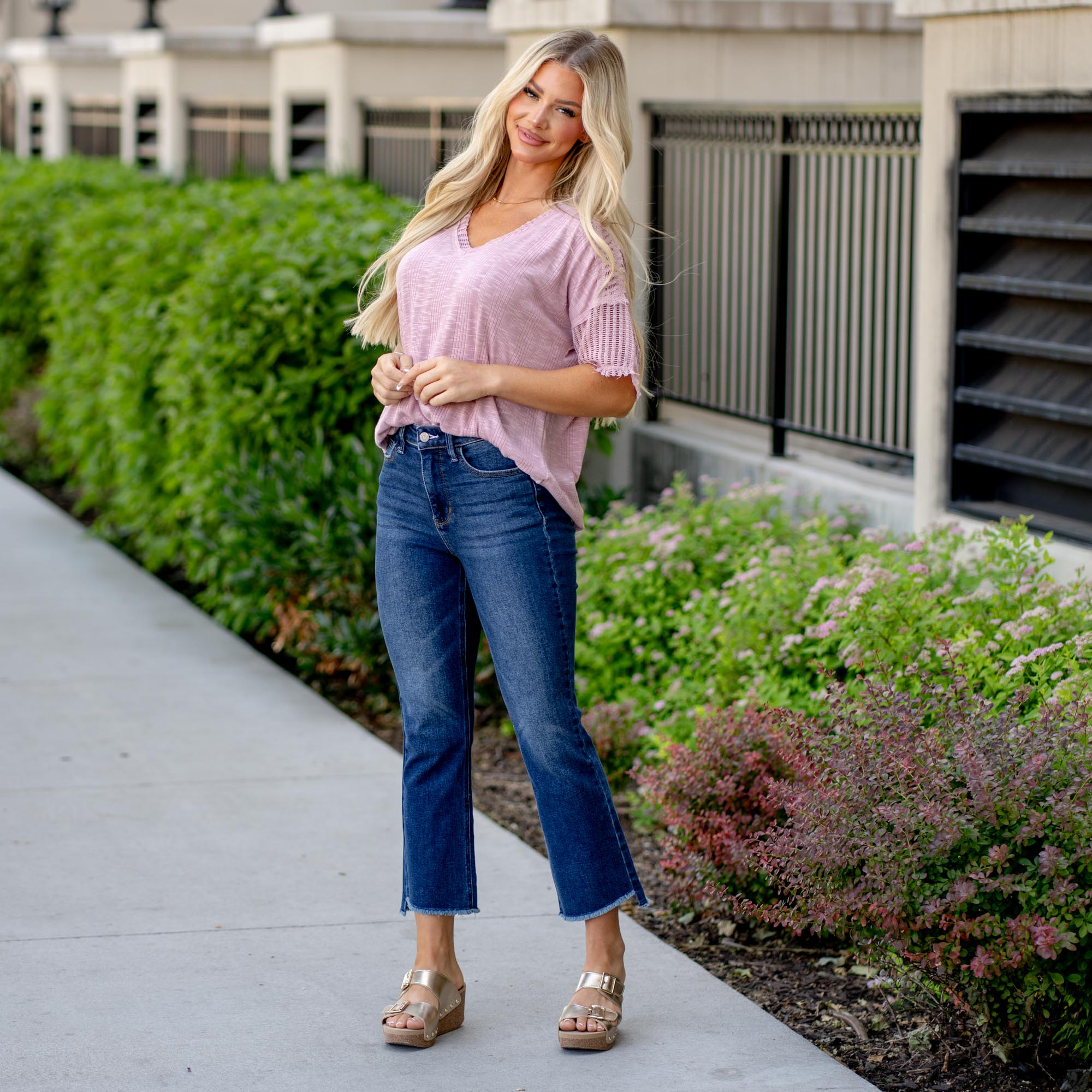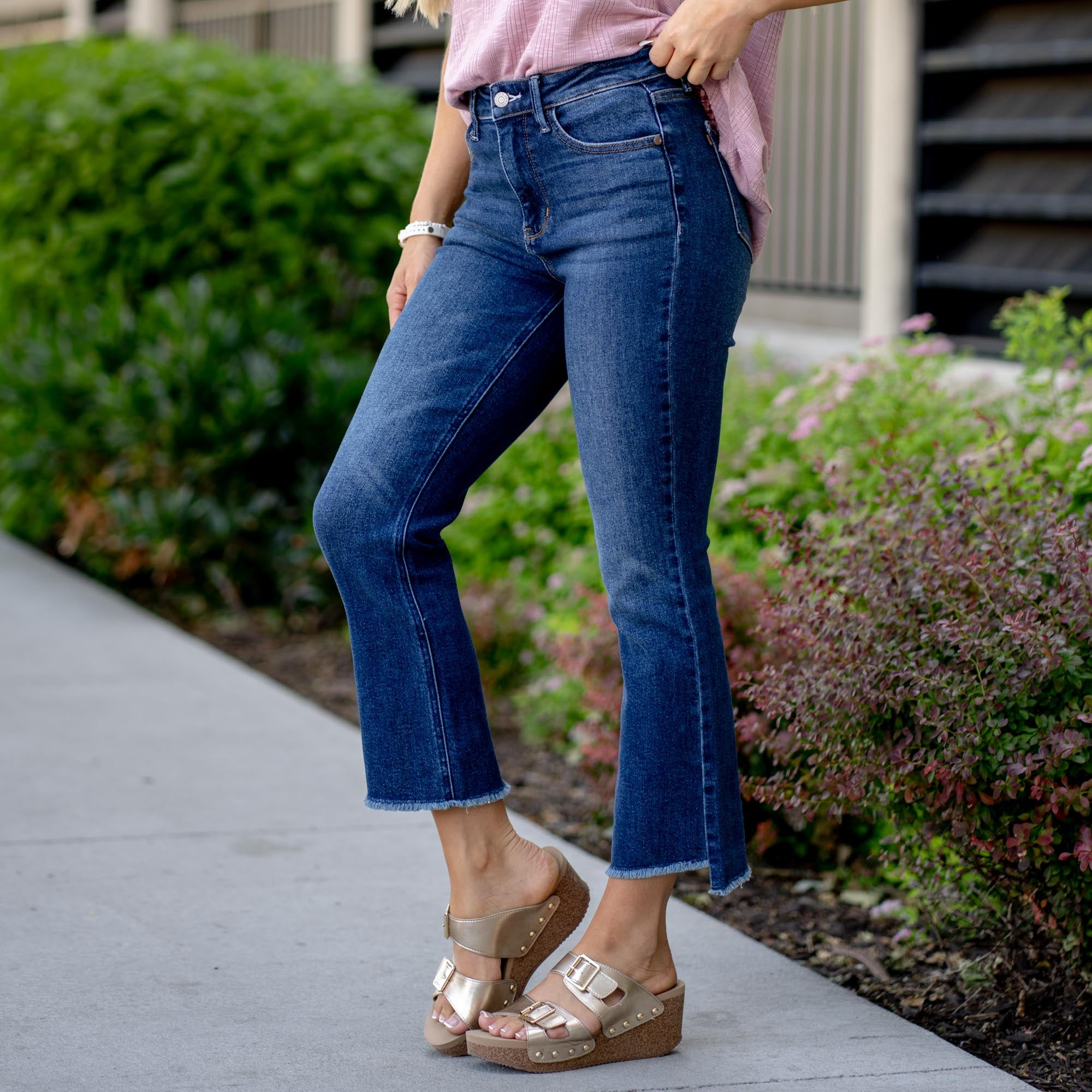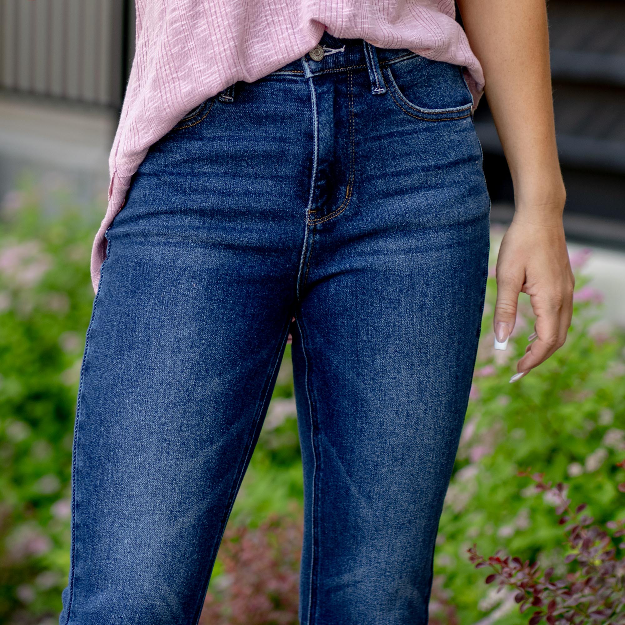 The Ivy Kick Flare is where clean lines meet subtle edge. Designed with a flattering high rise and a cropped kick flare silhouette, this dark wash denim brings just the right amount of structure and stretch. Sleek and easy to style, it’s perfect for showing off your favorite shoes—whether you’re dressing up or keeping it casual.