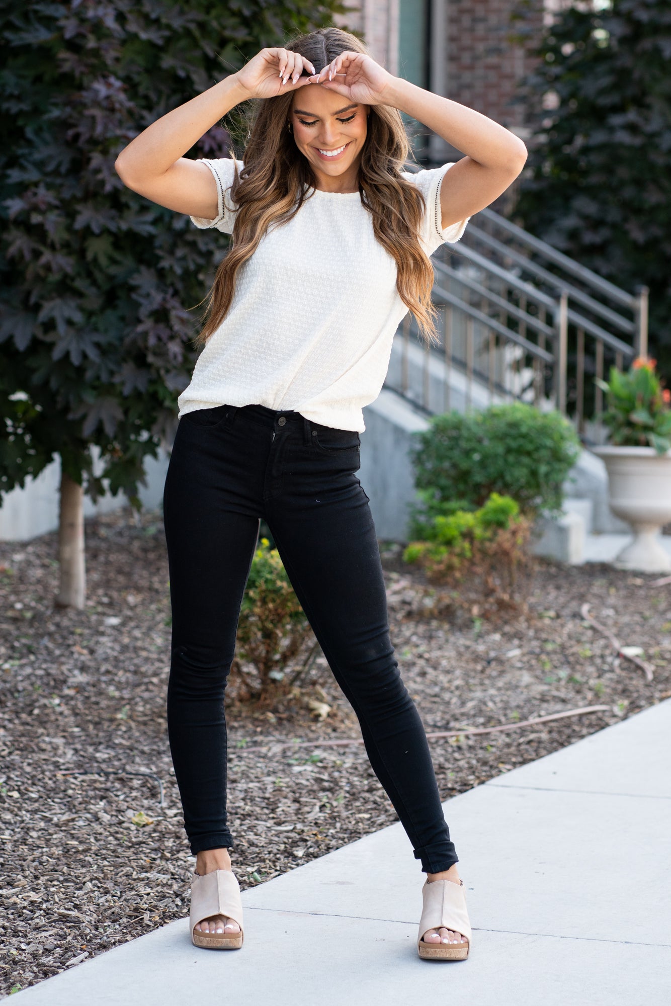 Alyssa wears a size 25 in jeans, a small in tops, and 8 in shoes. She is wearing size 3 in these jeans.