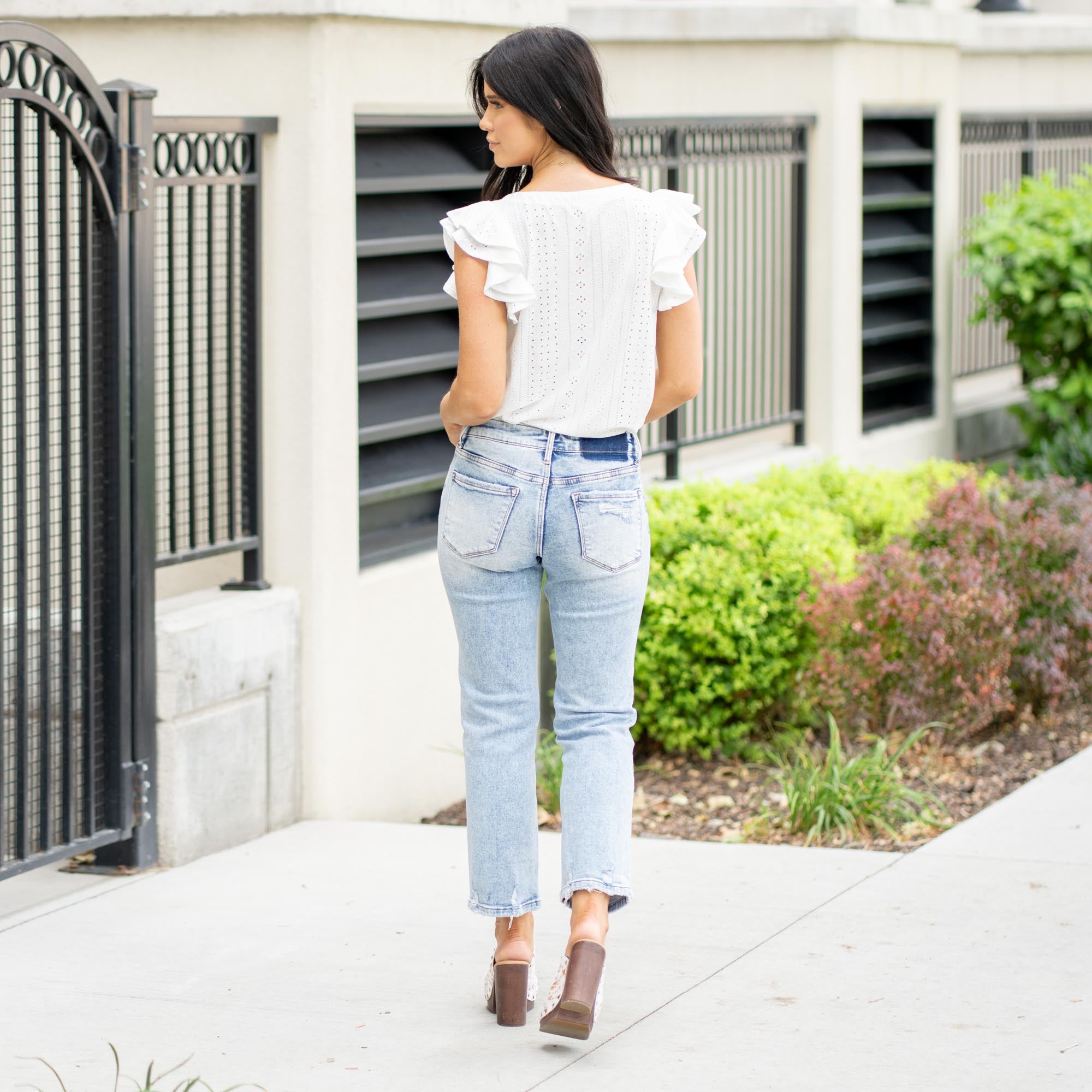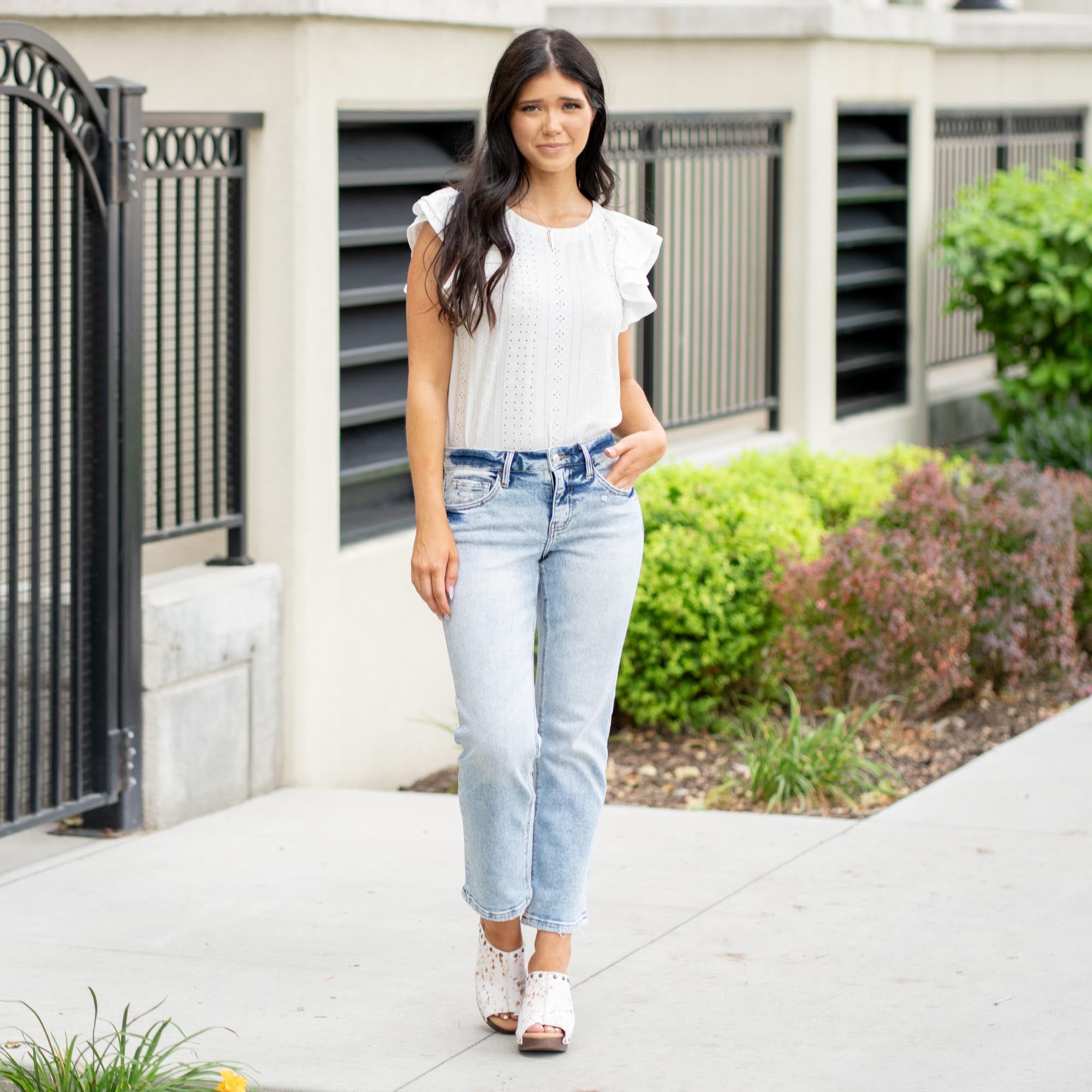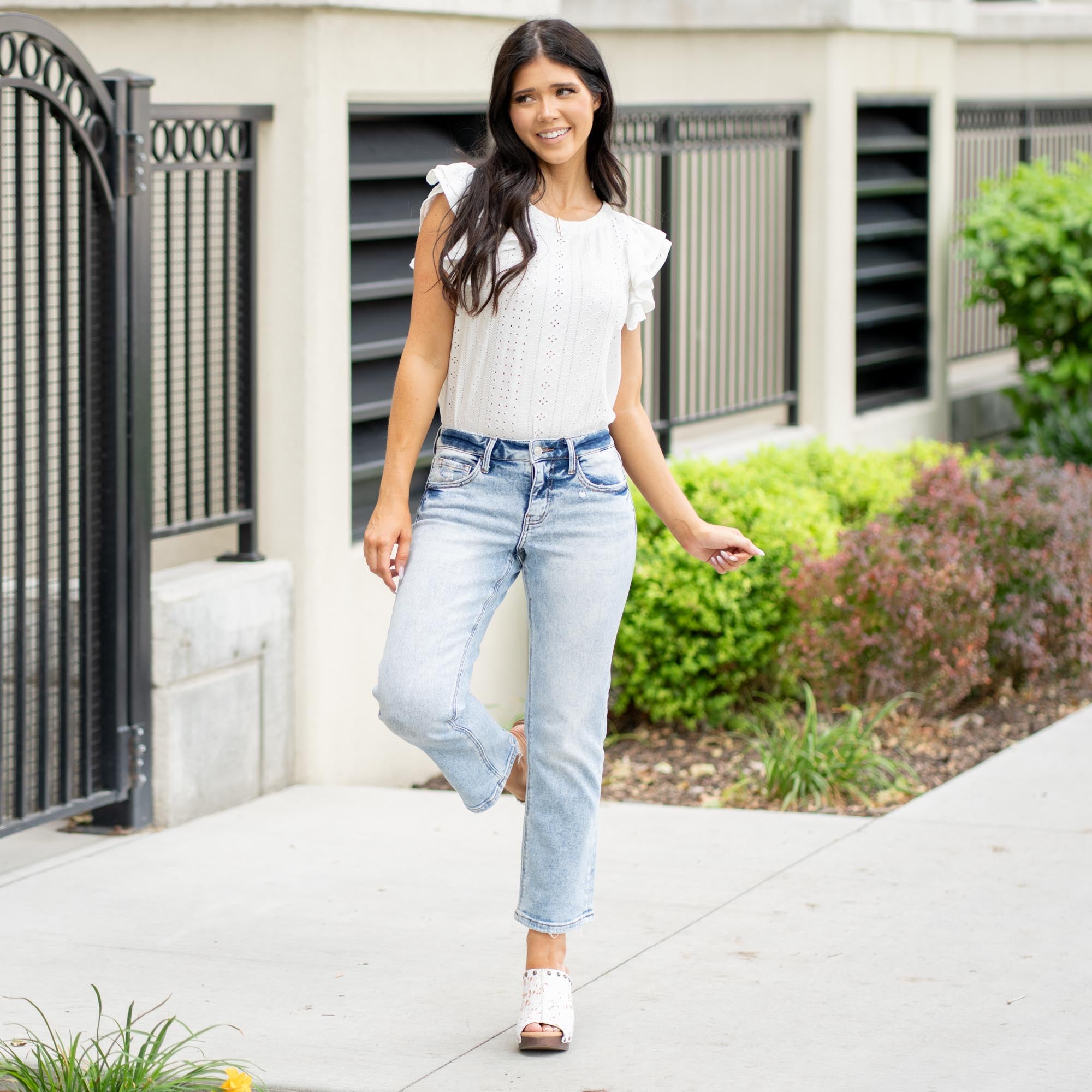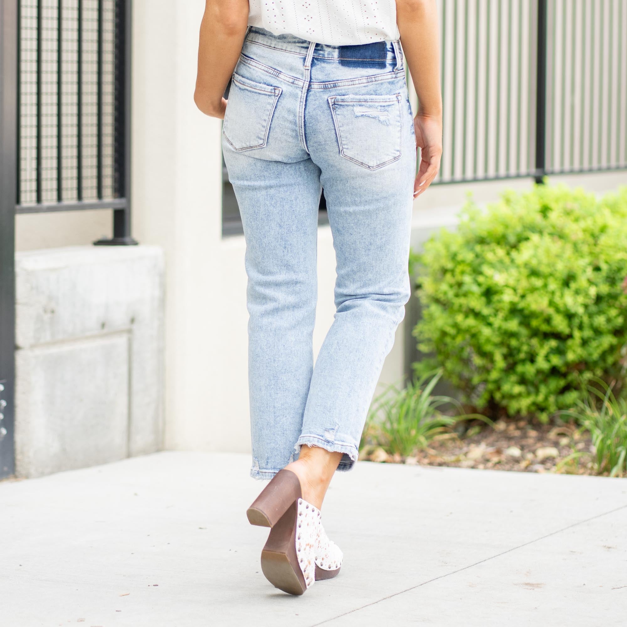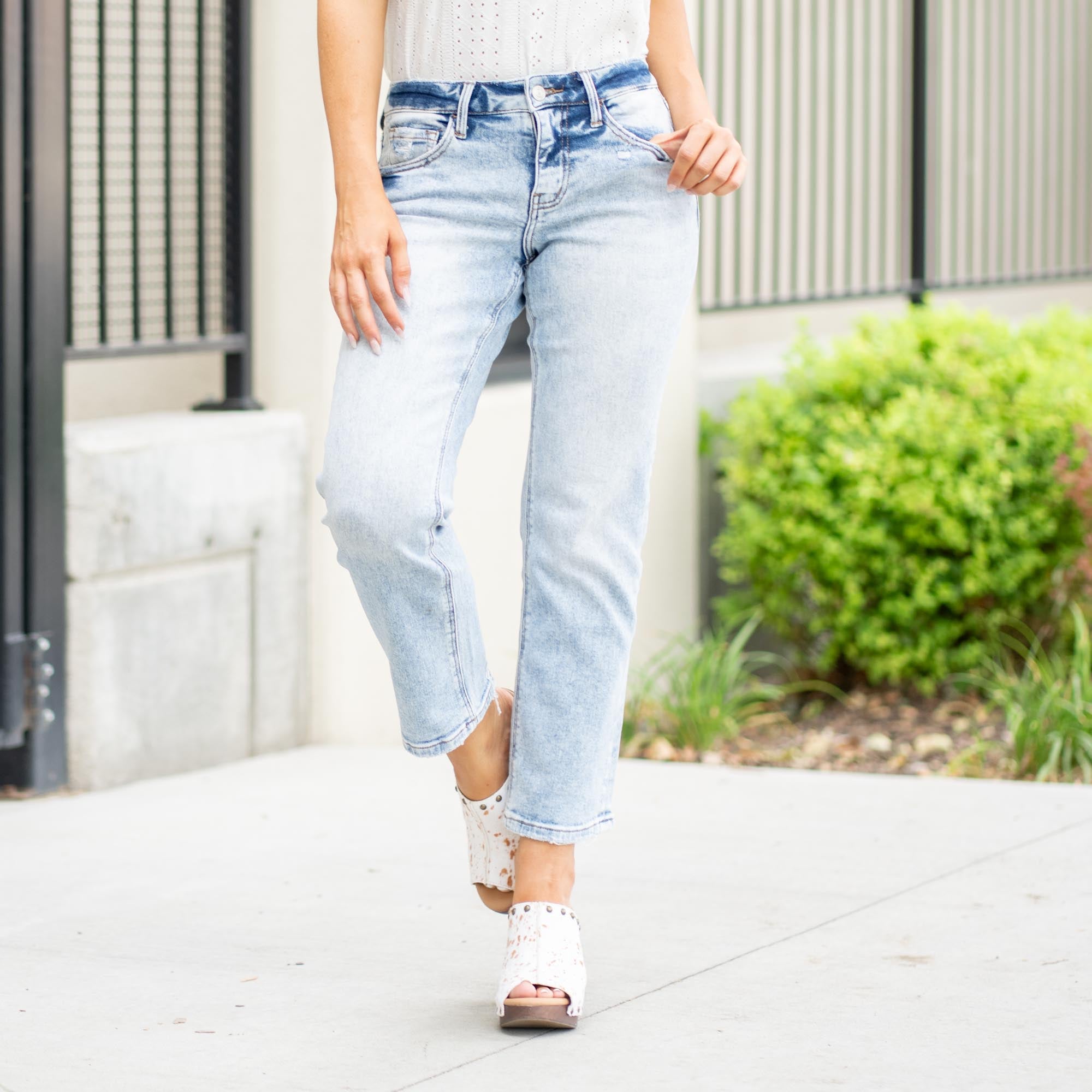 Command your day with confidence in the Like A Boss Jeans. Designed with a classic mid-rise waist and easy straight leg, this cropped style is all about effortless polish. Crafted from comfort stretch denim that moves with you, they strike the perfect balance between structure and softness. Pair with sneakers or ankle boots and show them who's boss—wherever you're headed.