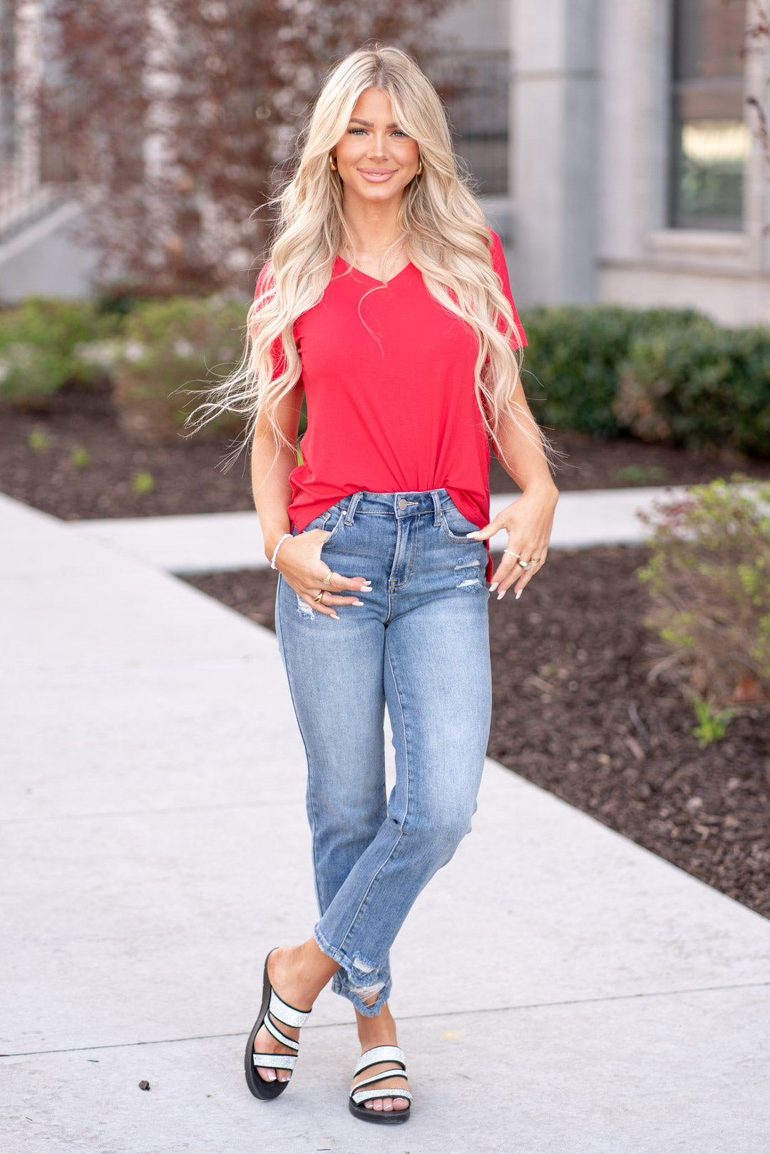 Risen denim is known for its soft stretch fabric and modern fits. Most jeans and shorts include spandex for comfort and flexibility. Risen's plus sizing is available in 1X–3X (not W-sizes), and runs true to size with a flattering mid-to-high rise design.