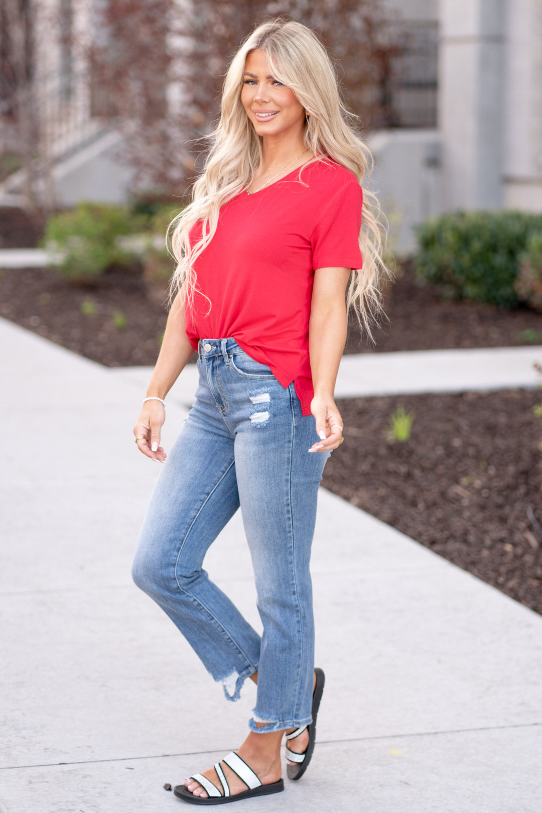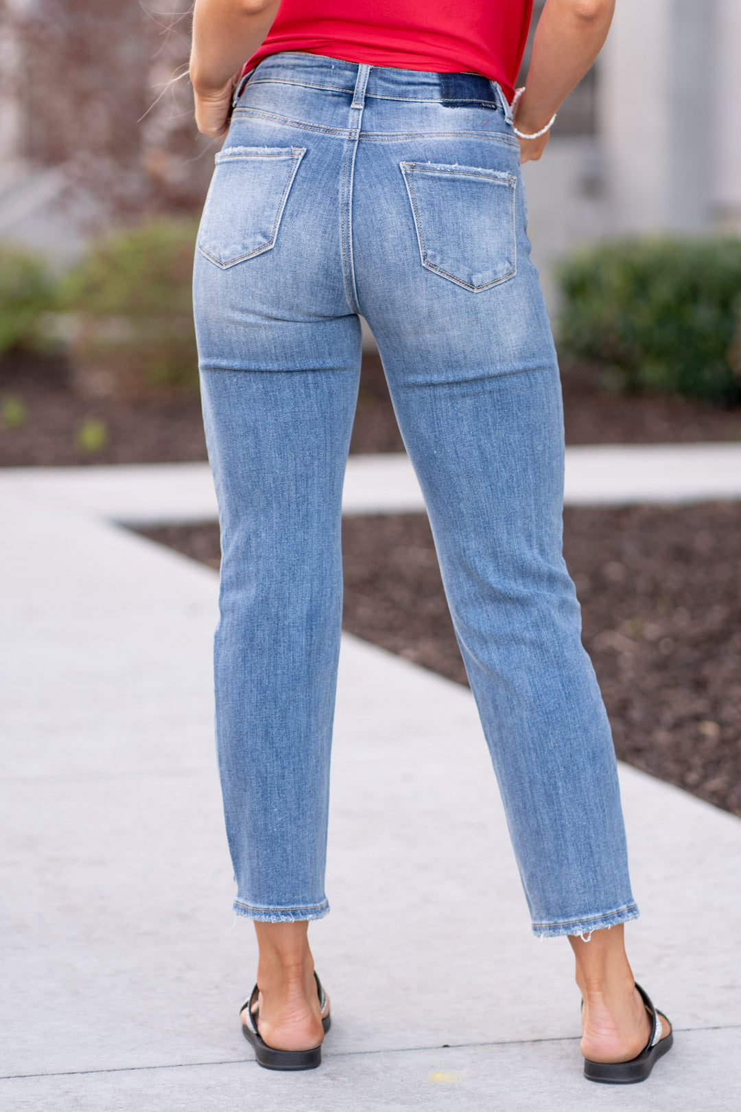 The High Waist Distressed Cropped Jeans are a trendy and edgy addition to your denim collection. The high waist design offers a flattering and on-trend silhouette. The distressed detailing adds a cool and rugged vibe to the cropped jeans. Made from durable denim fabric, these jeans are both stylish and comfortable. Pair them with a graphic tee and sneakers for a laid-back look. Whether you're running errands or meeting friends for coffee, these jeans are a versatile and fashion-forward choice for any casual outing.