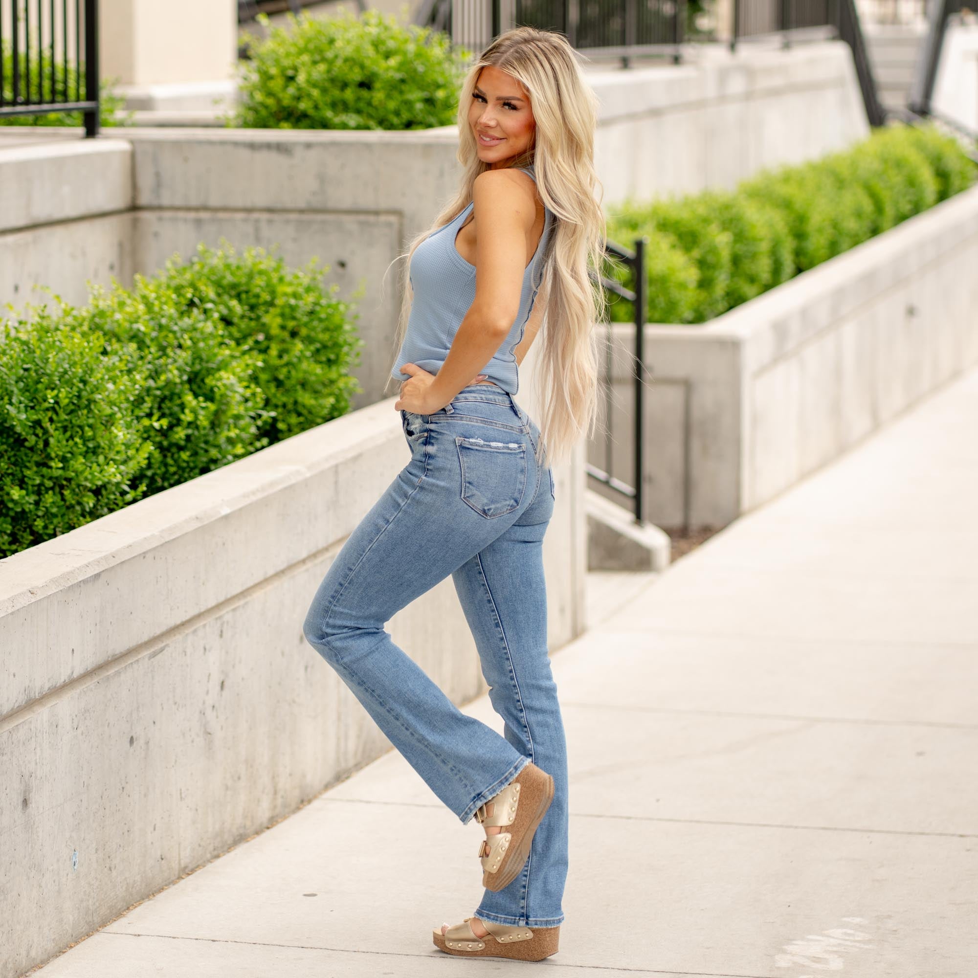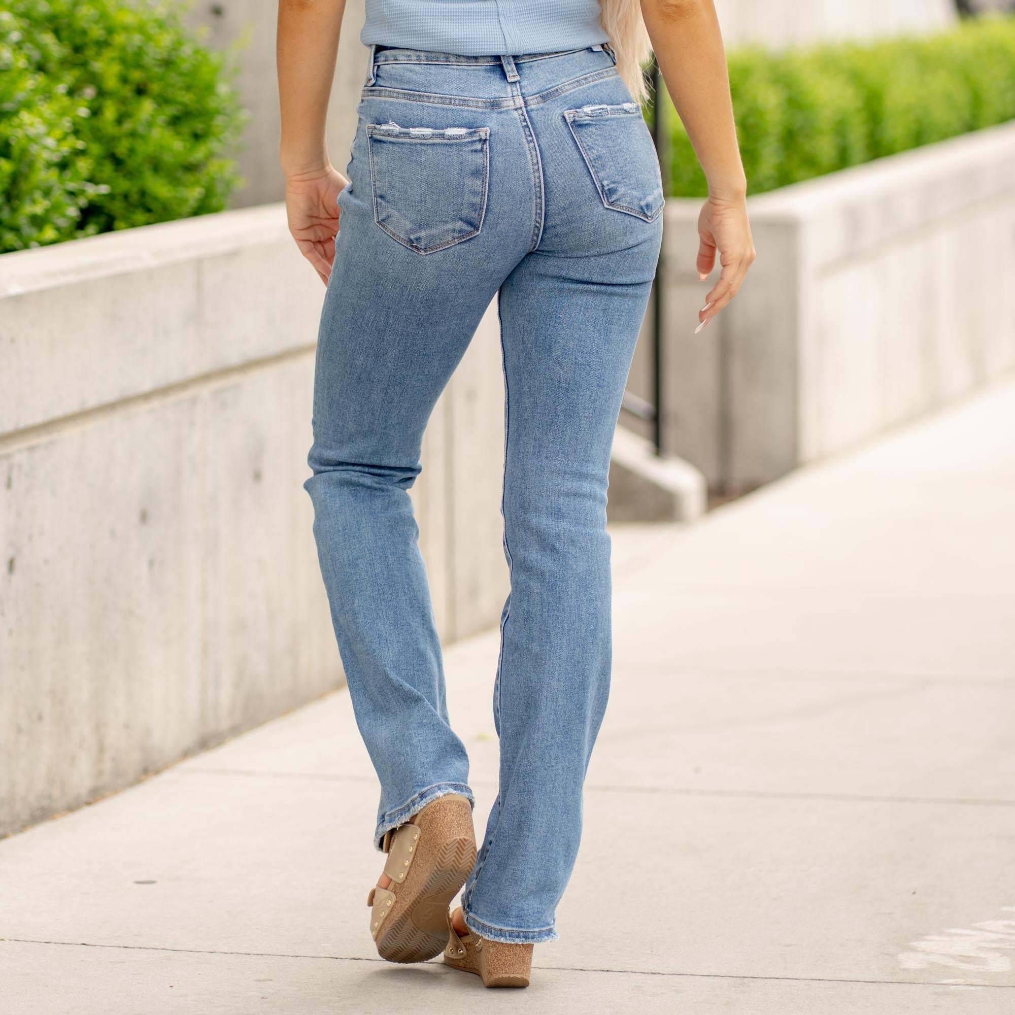 The Sculpt & Stroll Straight jeans from Risen feature built-in tummy control for a smooth, flattering silhouette that hugs in all the right places. With a high-rise waist and classic straight leg fit, this pair keeps things polished yet easygoing. Crafted from comfort stretch denim that moves with you—these jeans stay crisp, structured, and confident all day long. Finished with a zip fly, single-button closure, and a timeless five-pocket design.