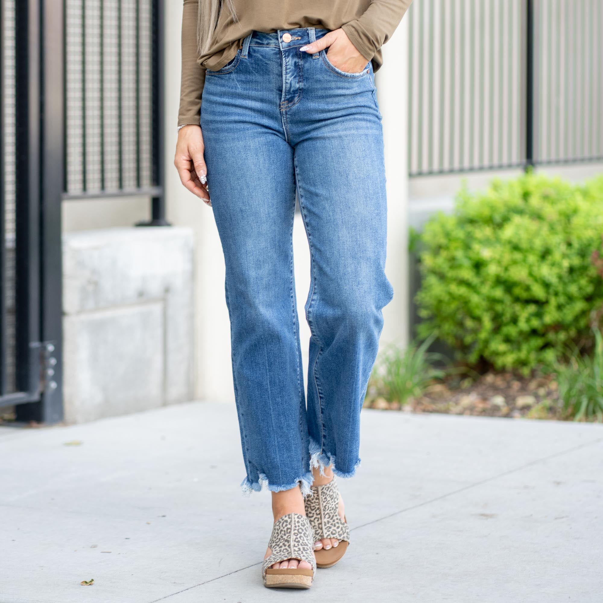Smooth, sculpt, and stride in style with the Define & Refine Ankle Straight jeans. Designed with Risen’s built-in tummy control for that cinched-in feel, this high-rise pair hits at the ankle with a frayed hem for an effortless edge. Crafted in a soft, medium blue wash and comfort stretch denim, these jeans flatter your curves while keeping it easy. Classic 5-pocket styling and zip fly closure make them your new everyday essential.
