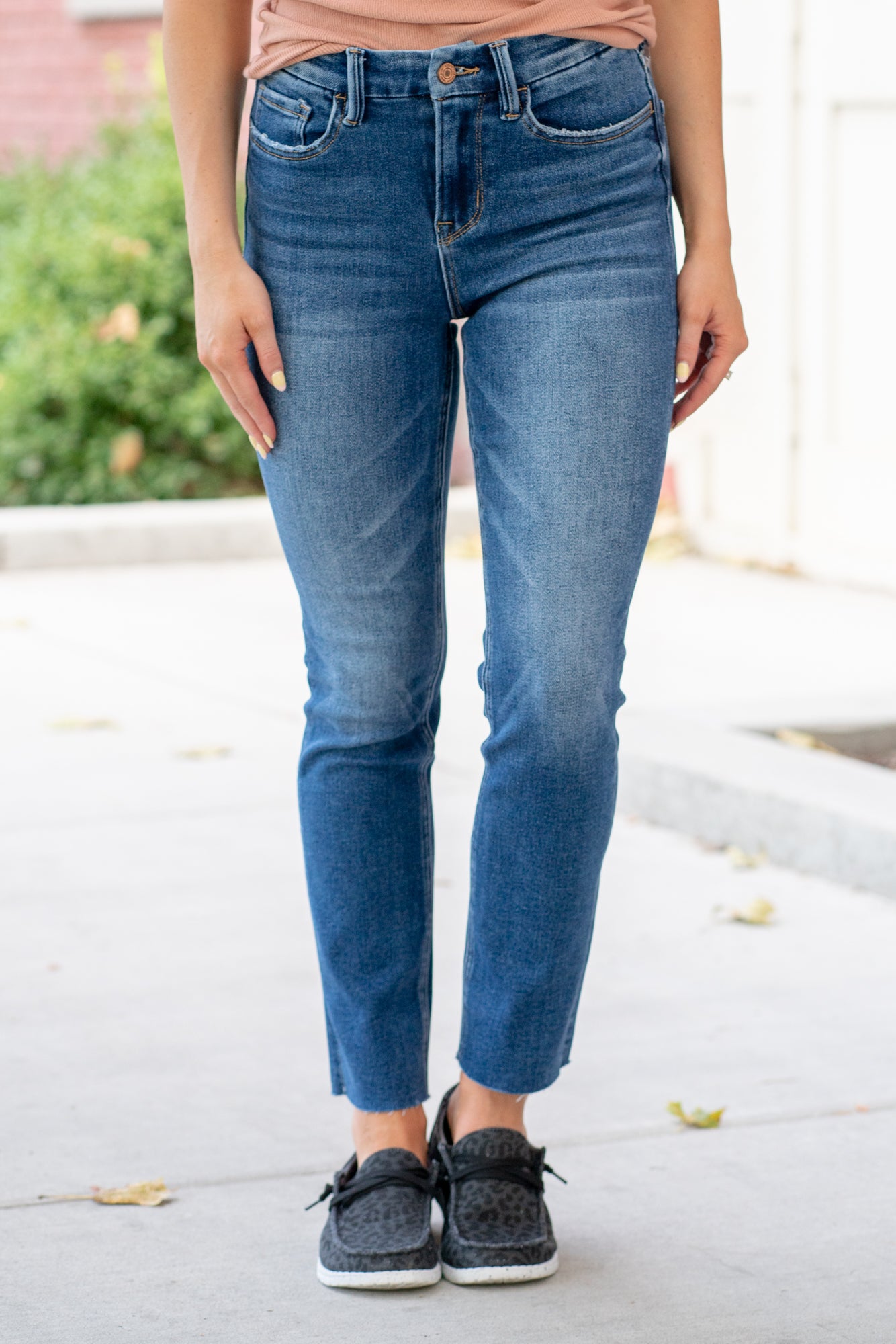 Indulge in comfort and style with our Comfort Stretch Denim High Rise Jeans. These slim-fit, straight-leg jeans feature a high-rise waist that complements your silhouette beautifully. The cropped length adds a trendy touch, while the raw hem adds a hint of edginess. Elevate your everyday look with these versatile and fashion-forward jeans.