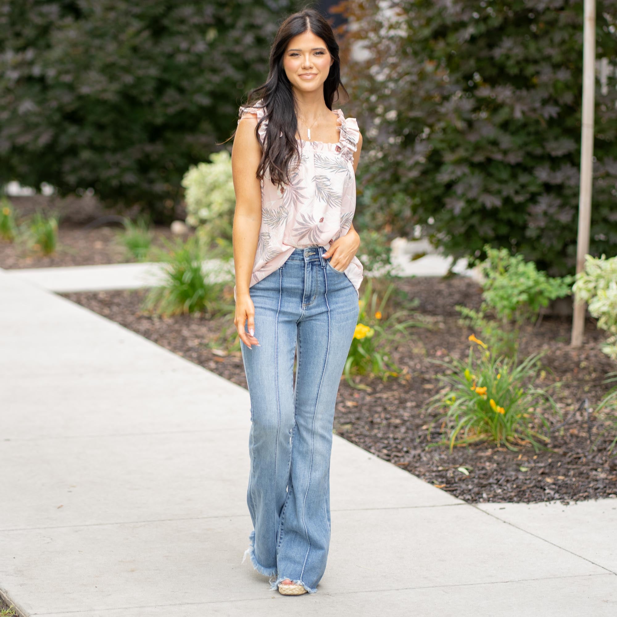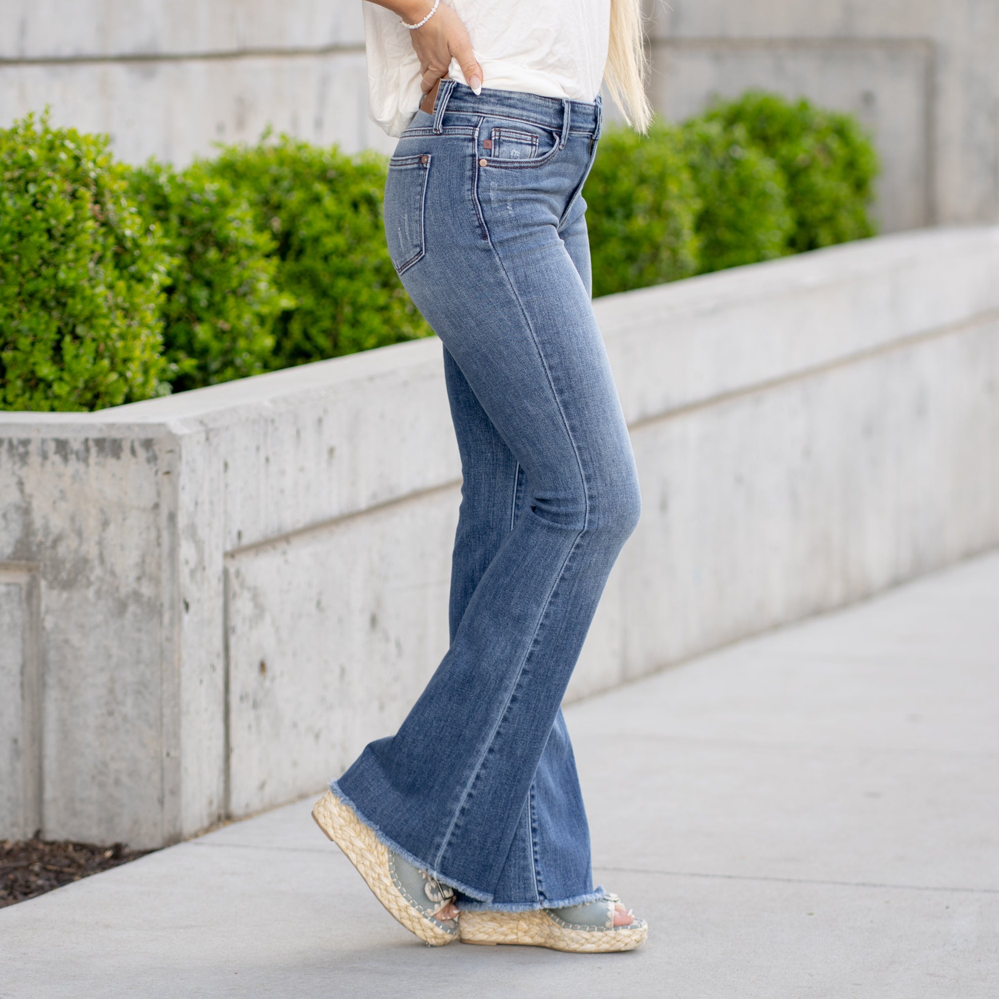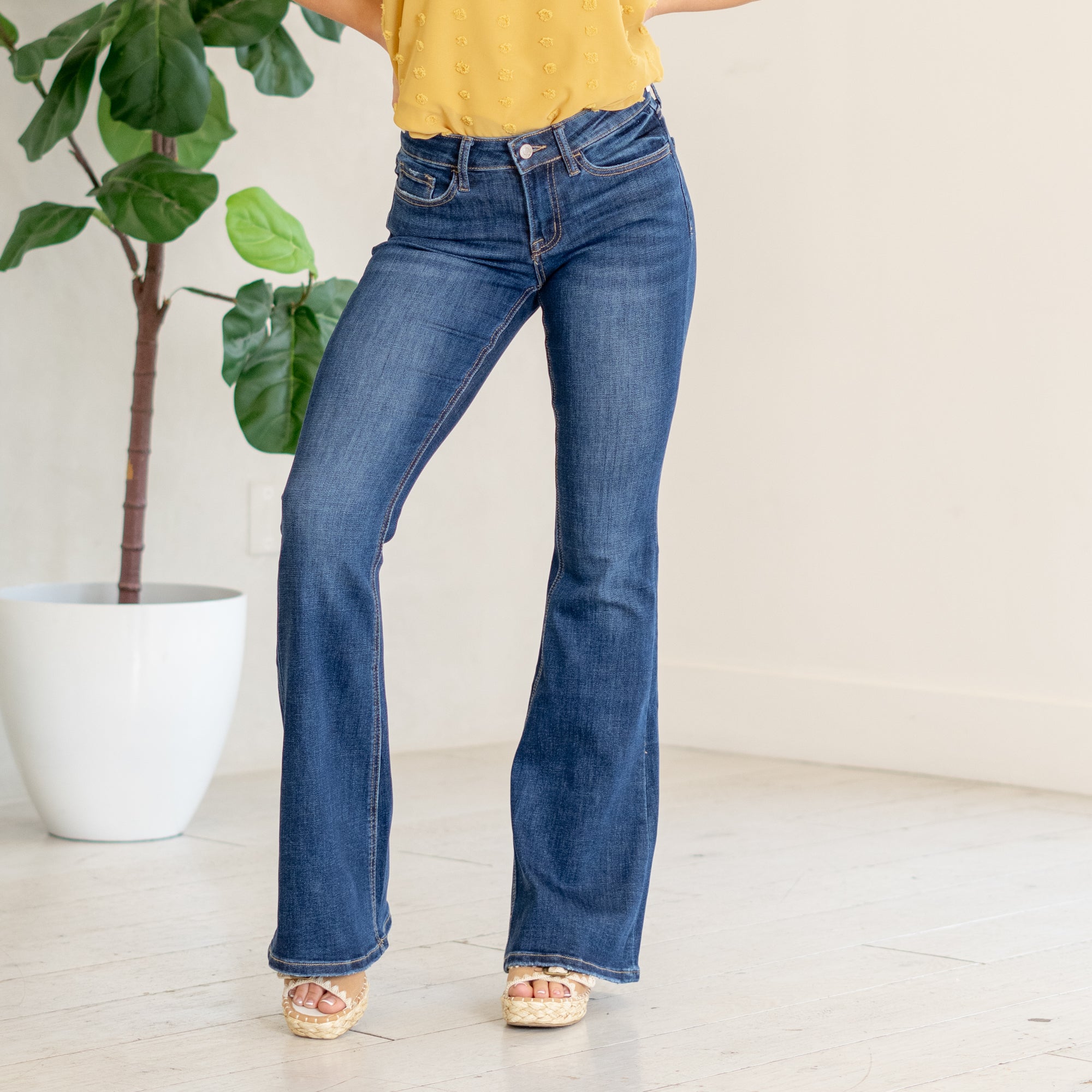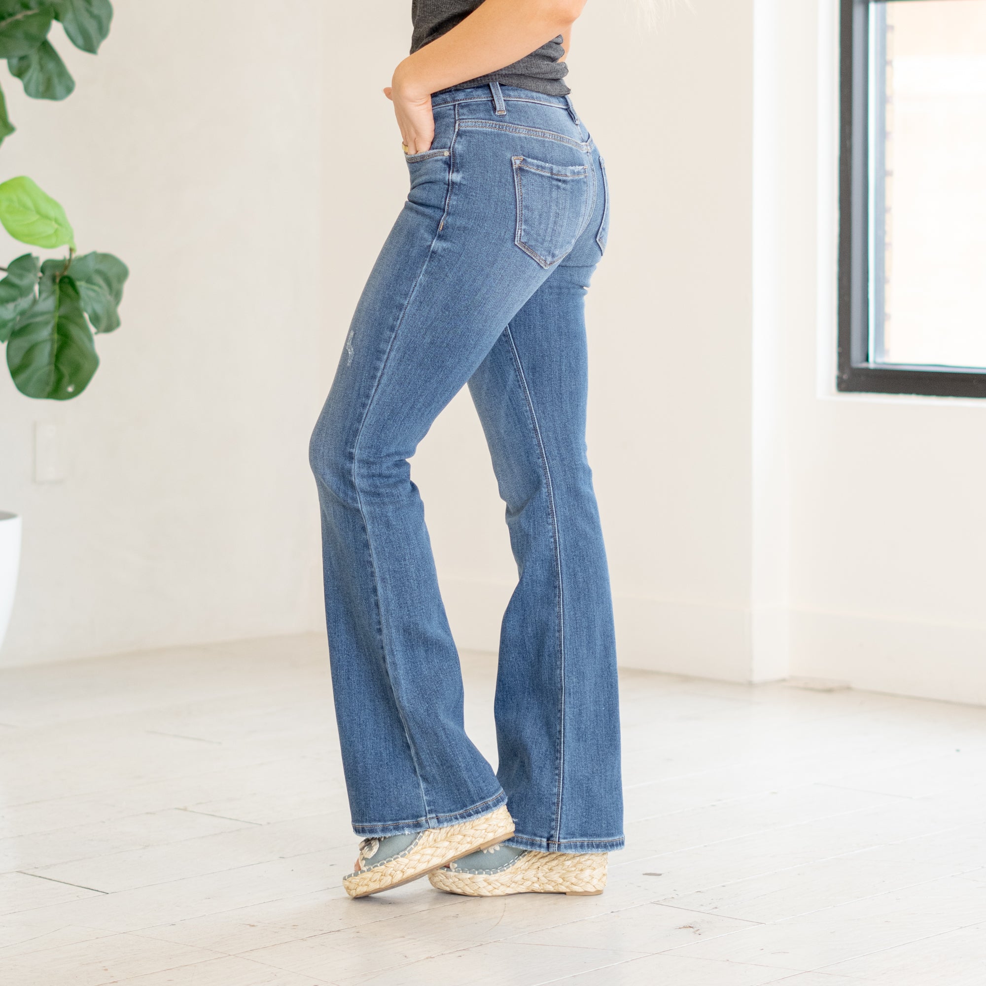 Judy Blue Meadow Mid Rise Flare Jeans Medium Blue Wash Regular & Plus Sizes
