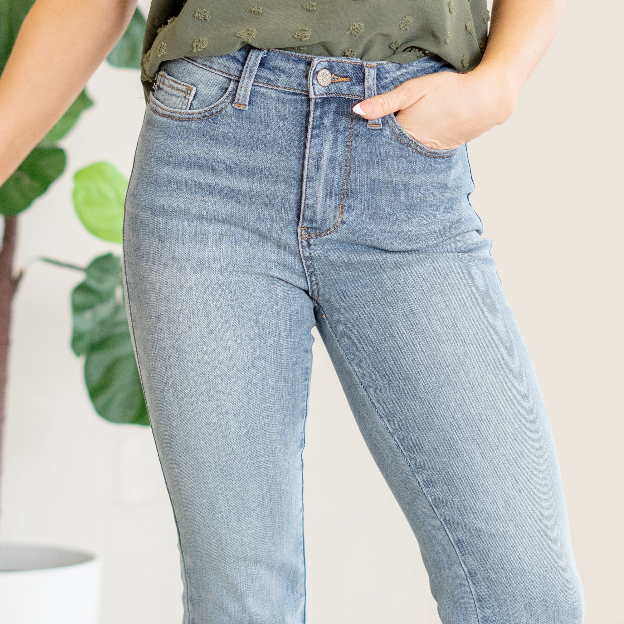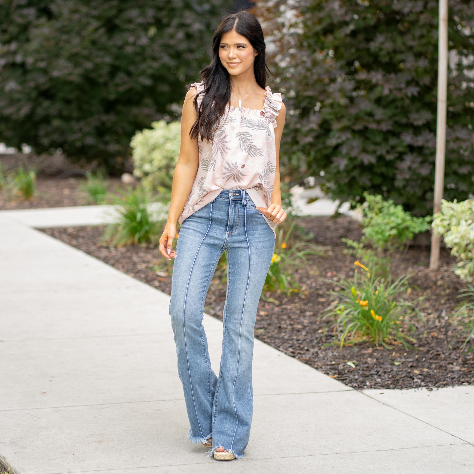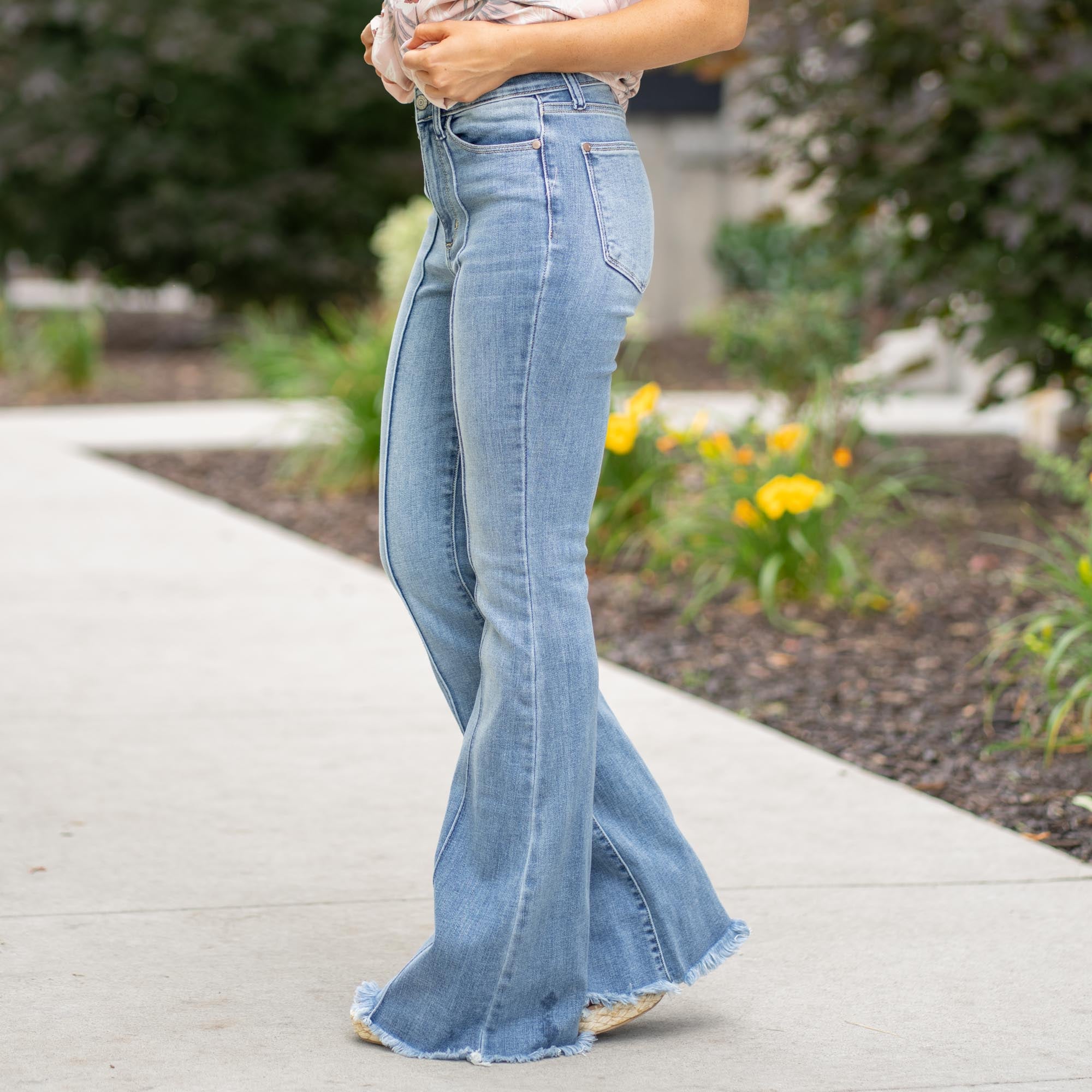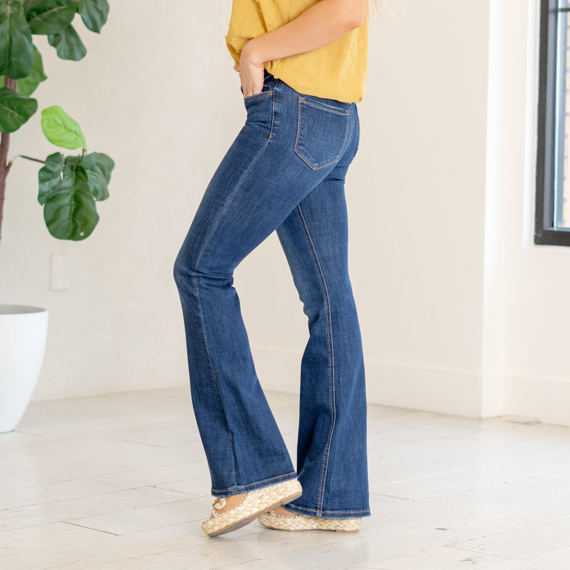 Judy Blue Daydreamer Tummy Control Flares Jeans Medium Blue Wash Regular & Plus Sizes
